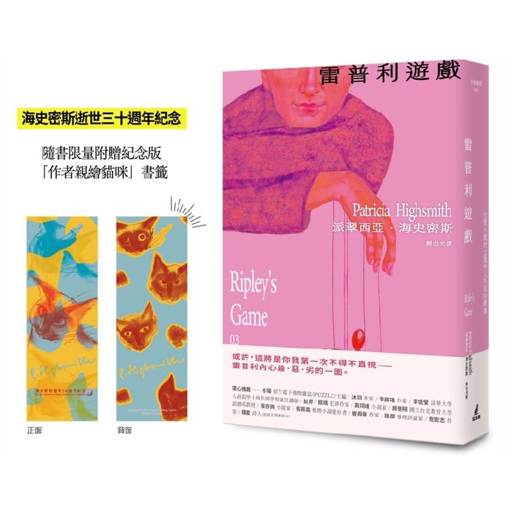 Series 紙本書 雷普利遊戲【雷普利系列03】(海史密斯逝世30週年紀念版):犯罪小說史上最令人不安的經典 貓頭鷹出版 派翠西亞.海史密斯 雷普利遊戲【雷普利系列03】(限量附贈海史密斯逝世30週年紀念版「作者親繪貓咪 」書籤):犯罪小說史上最令人不安的經典 貓頭鷹出版 派翠西亞.海史密斯 eBook NT$357 Printed book NT$403 Preview eBook DRM NT$357 Printed book NT$403