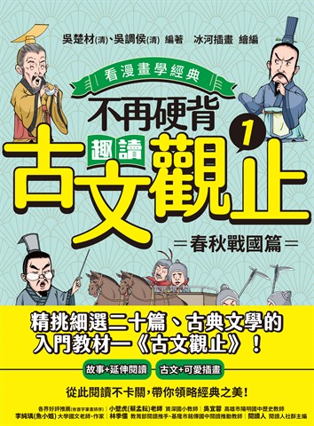 Series 紙本書 不再硬背,趣讀古文觀止(1)【看漫畫學經典】 晴好出版 吳楚材(清) 吳調侯(清) 傅敬軒(審訂) 不再硬背,趣讀古文觀止(1)【看漫畫學經典】:春秋戰國篇 晴好出版 吳楚材、吳調侯編著、冰河插畫繪編 eBook NT$384 Printed book NT$379 Preview eBook DRM NT$384 Printed book NT$379