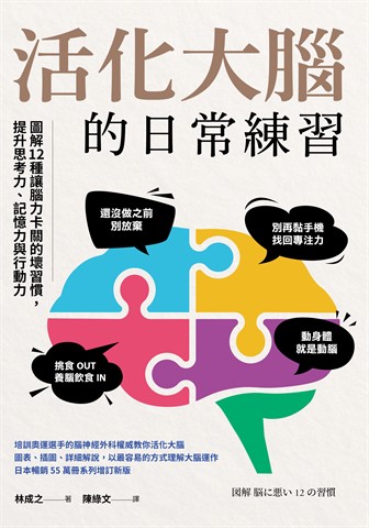 紙本書 活化大腦的日常練習 木馬文化 林成之 活化大腦的日常練習:圖解12種讓腦力卡關的壞習慣,提升思考力、記憶力與行動力 木馬文化 林成之 eBook NT$320 Printed book NT$360 Preview eBook DRM NT$320 Printed book NT$360