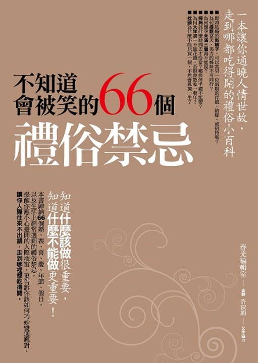 紙本書 不知道會被笑的66個禮俗禁忌 春光 春光編輯室 不知道會被笑的66個禮俗禁忌 春光 春光編輯室 eBook NT$175 Printed book NT$225 Preview eBook DRM NT$175 Printed bookOut of stock NT$225