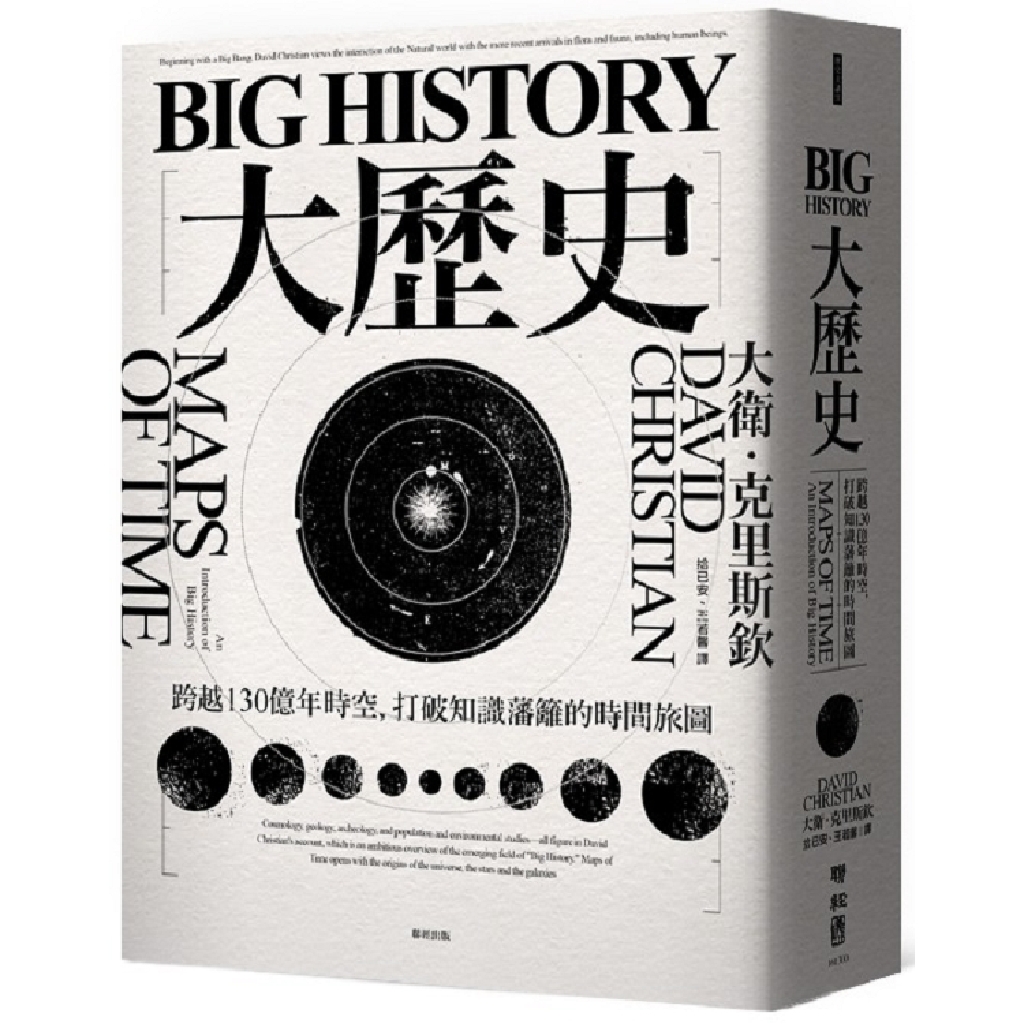 《Big History大歷史:跨越130億年時空,打破知識藩籬的時間旅圖》講述從大爆炸到地球形成,生命起源到現代文明長達130億年的歷史,將人類史融入整個宇宙的時間線。它是新一輪的認知革命,比爾‧蓋茲斥資千萬傾力支持的全球公開課「Big History大歷史計畫」(Big History Project),向全世界推廣大歷史教育;他高度讚賞大歷史改變了我們看待世界的方式。全球史奠基人威廉‧麥克尼爾,將大衛‧克里斯欽的《Big History大歷史》譽為媲美牛頓「萬有引力定律」、達爾文「進化論」的經典著作;既有《人類大歷史》的宏觀視野,也有《時間簡史》和《物種起源》的知識深度,建立起整個世界起源直至未來的時間架構。