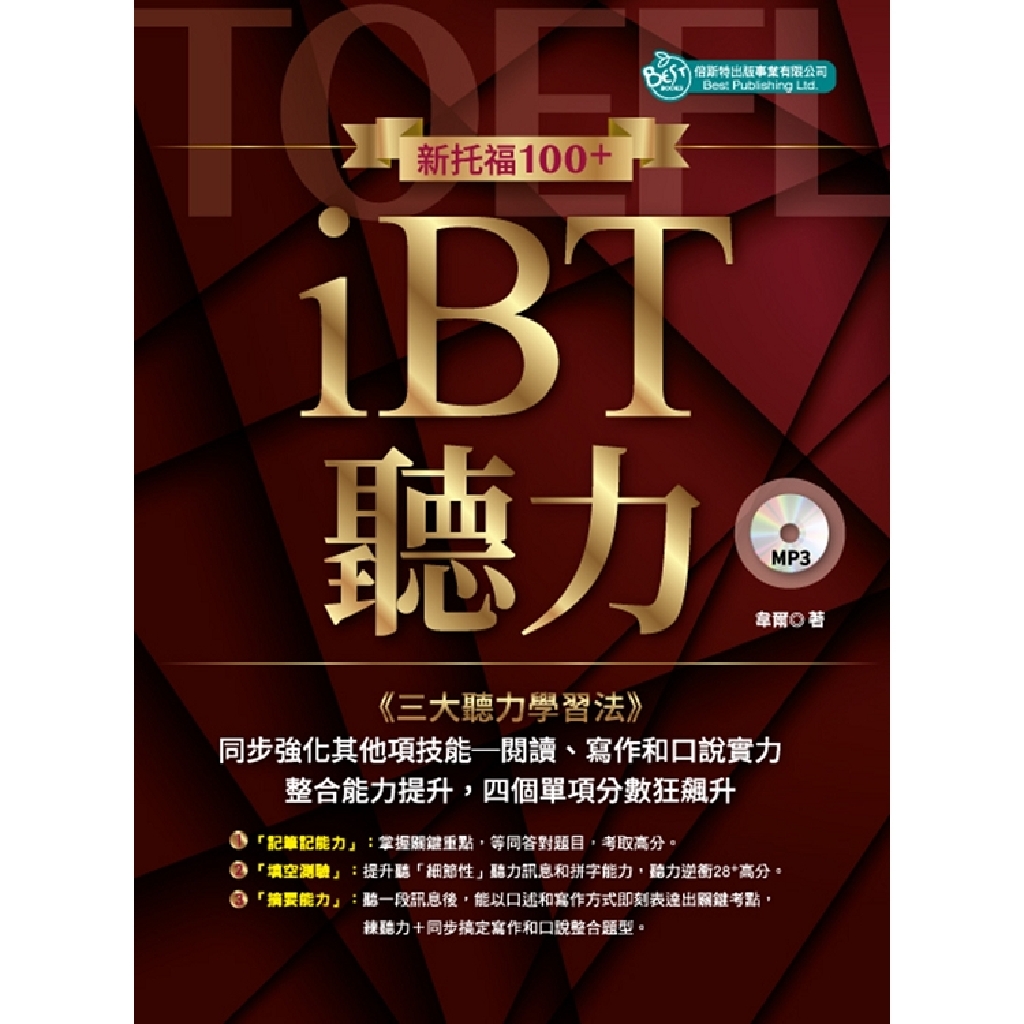 最短路徑的新托福考試備考由「聽」、「說」、「寫」的關聯性,提升新托福「口說」和「寫作」整合答題能力,準備聽力,大幅節省口說和寫作備考時間。