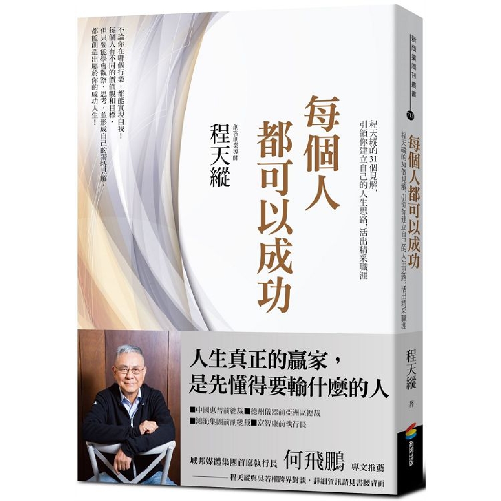 「每個人有自己獨一無二的人生,有自己的想法,有自己的追求,都可以自我實現、成就自己。不要copy誰,也不必羨慕別人,每個人都能在自己的一方領域中成功。」——程天縱/本書作者