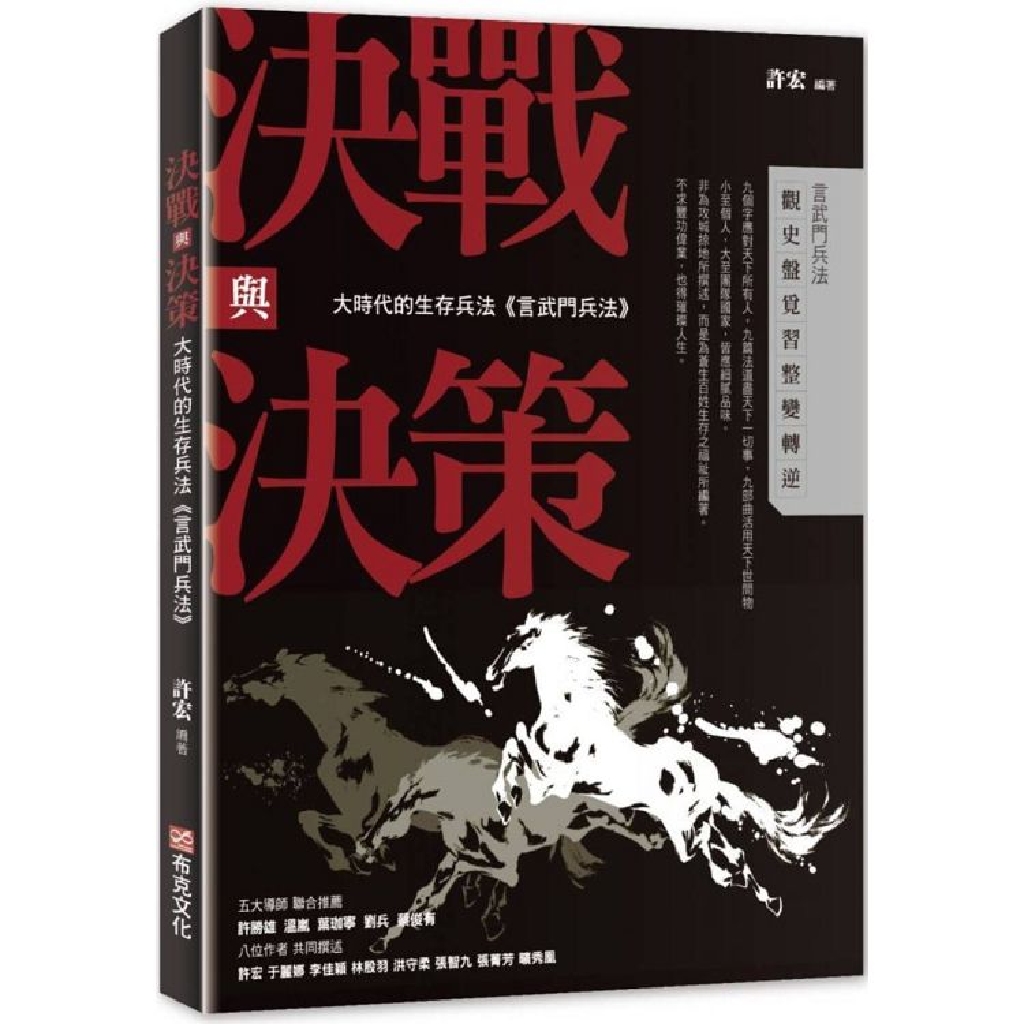 因此,言武門兵法不談征戰,只談生存之道。在盛世得以茁壯,處亂世仍可安然。不只可用在商場、職場,更可運用在人際互動與情感,創造那自在而踏實的人生。