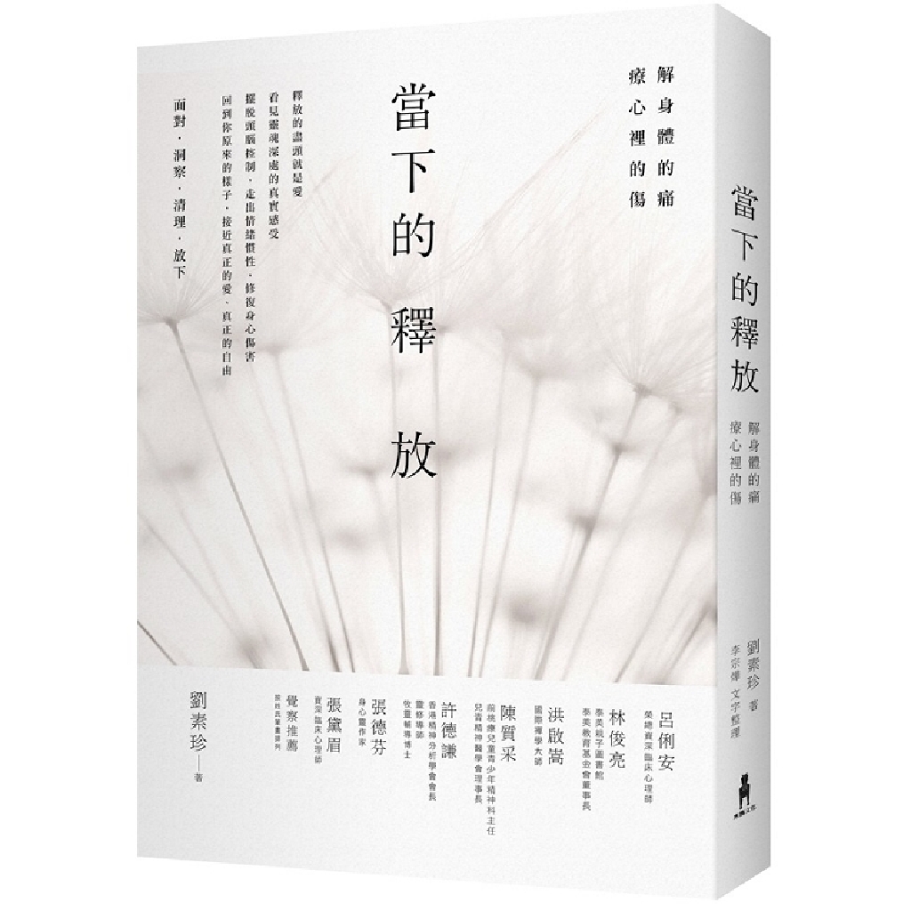 「從情緒的負擔、沉重的業力、身體的障礙中解脫出來的終極方法。我們常說「當下」、「覺察」、「覺知」,但是實際上如何活在當下,如何培養覺知,卻是很少有書解釋得非常清楚的,這本書就是老師多年探索、研究、體會的精華分享。」張德芬(身心靈作家)