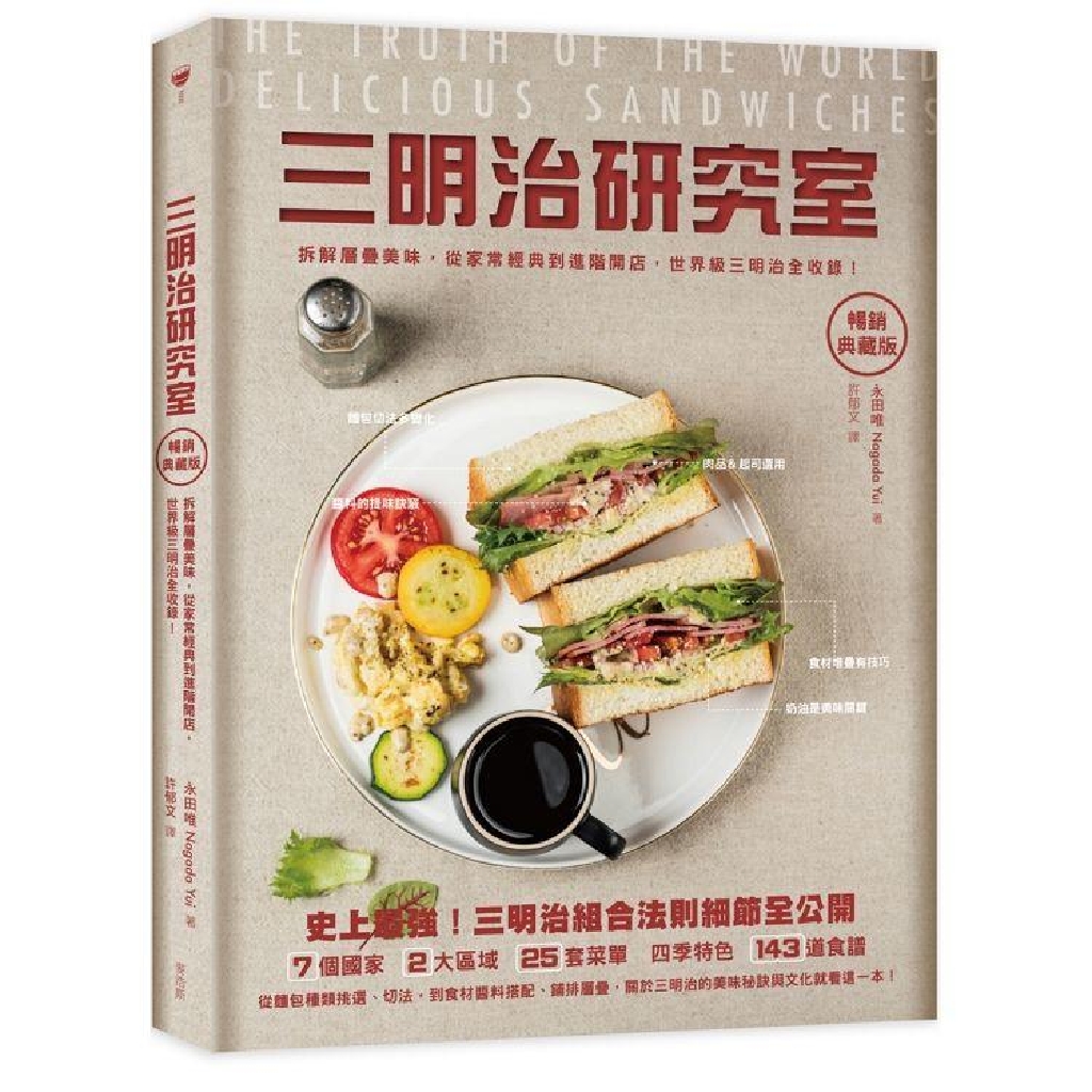 三明治是全世界許多國家都有的食物,製作能豐盛亦能簡單,單手就可食而且千變萬化!本書作者-永田唯擁有18年以上設計開店級三明治的專業經驗,以職人精神研究這項平民食物的無限組合可能,特別用「美味公式」、「剖面解說」、「步驟圖示」詳解關於三明治的一切細節,更精選出世界各國的經典三明治。除了這些經典,更要教你從中延伸應用百種食譜,徹底拆解讓三明治最好吃的美味法則!