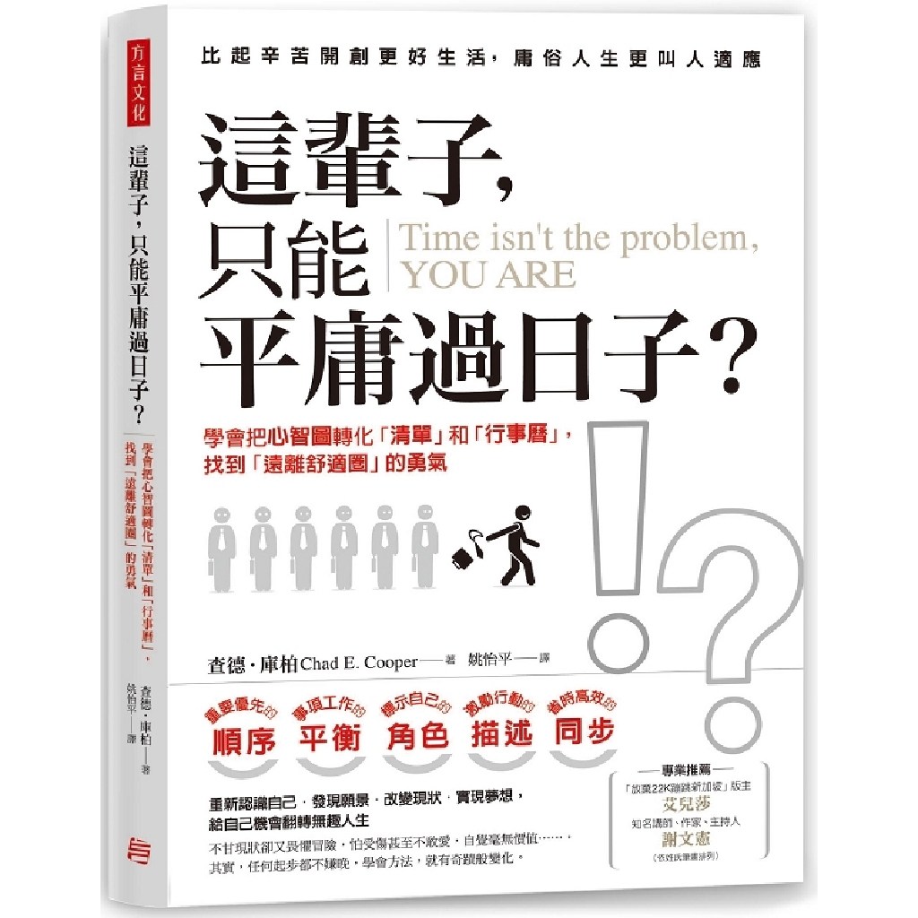 準備好「跨出舒適圈」的決心後,為了讓夢想一步步成真,查德.庫柏為你準備了一套重整「行事曆」的秘訣。讓你不再忙為「小事」焦頭爛額,而忽略了生命中更重要的「大事」。你可以兼顧事業與生活,更有充足時間陪伴家人、出國旅行,甚至重拾放棄的興趣與夢想。