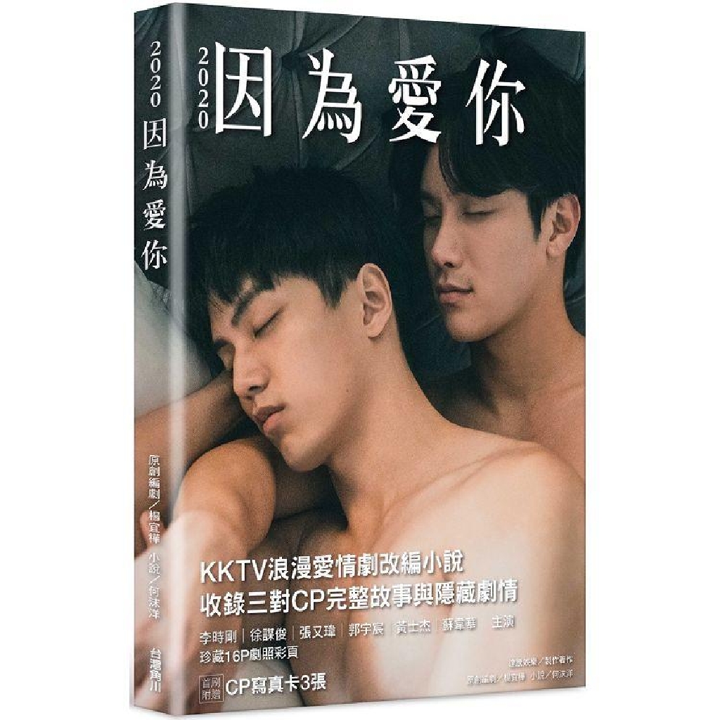 「2020因為愛你」為達騰娛樂與KKTV共同出品,九鼎娛樂承製之新類型BL網路短劇,由李時剛、徐謀俊、張又瑋、郭宇宸、黃士杰、蘇韋華等人主演。小說根據原劇本改寫,除實際戲劇播出內容,另收錄隱藏版情節,分章也與戲劇分集不同。