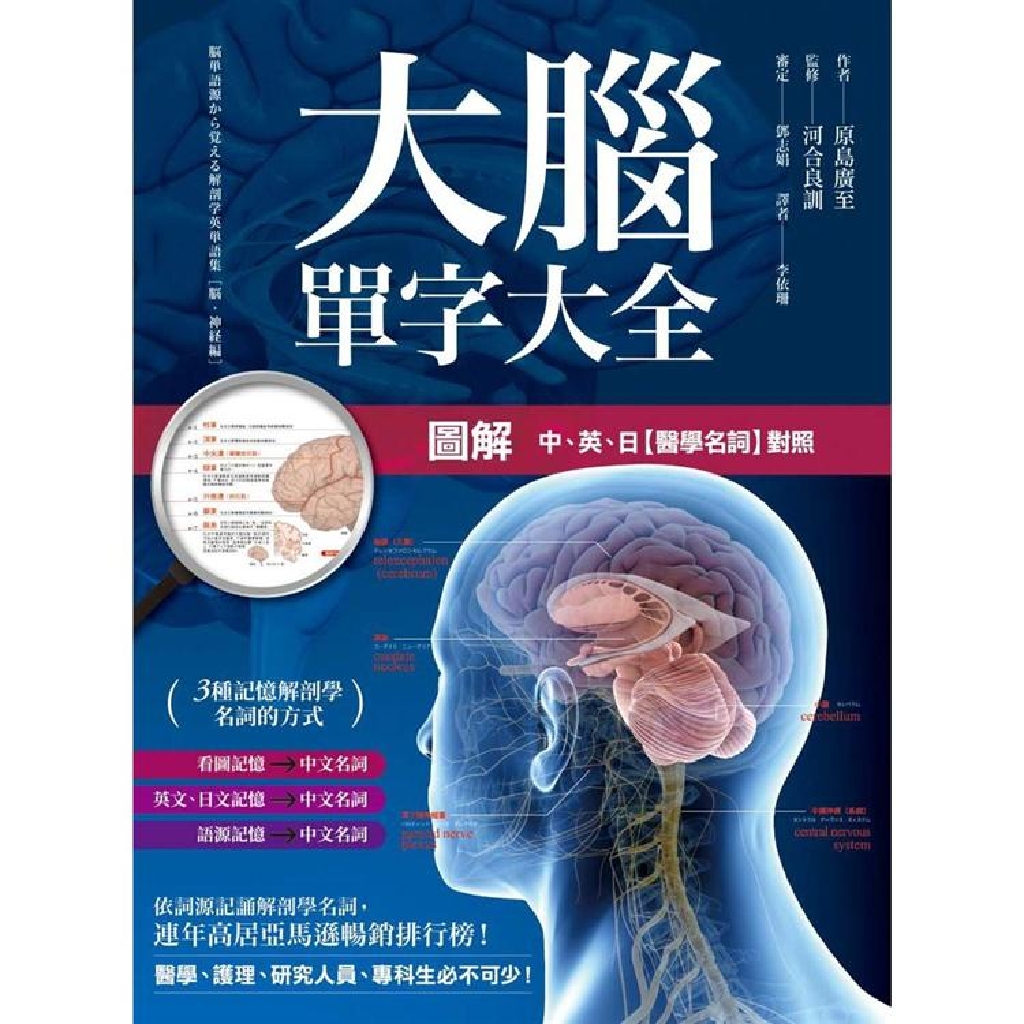 ◎中、英、日文相互對照:3種語言,連結【大腦圖解】、【拉丁、希臘語源解說】,相互應證、對照,利於快速理解、記憶。