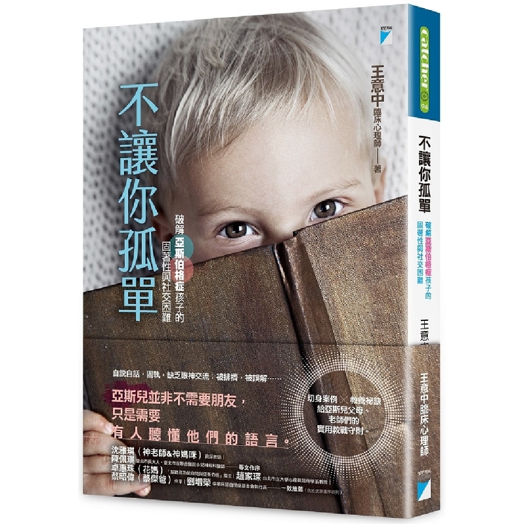 在家長、教育界廣受信賴與好評的王意中心理師,關注在DSM-IV中,被診斷為亞斯伯格症的孩子;DSM-5中,歸為自閉症譜系障礙(ASD),在光譜較輕微一端的孩子;未符合ASD的診斷,但伴隨人際溝通與社會互動困難、固著的想法與行為、興趣狹隘等特質的孩子。從24則親師都能感同身受的小故事說起,接著針對亞斯兒的兩大核心問題:待加強的社會與溝通能力、固著的想法與行為模式,親授「溫柔教養」的祕訣,讓總是獨來獨往的亞斯兒也能快樂上學、順利交友,在被理解中成長。