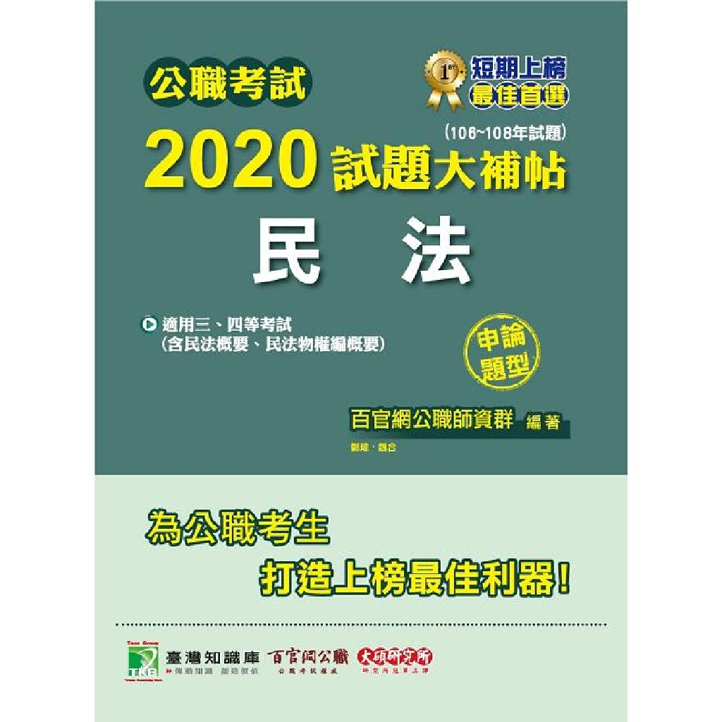 公職考試2020試題大補帖【民法(含民法概要、民法物權編概要)】(106~108年試題)(申論題