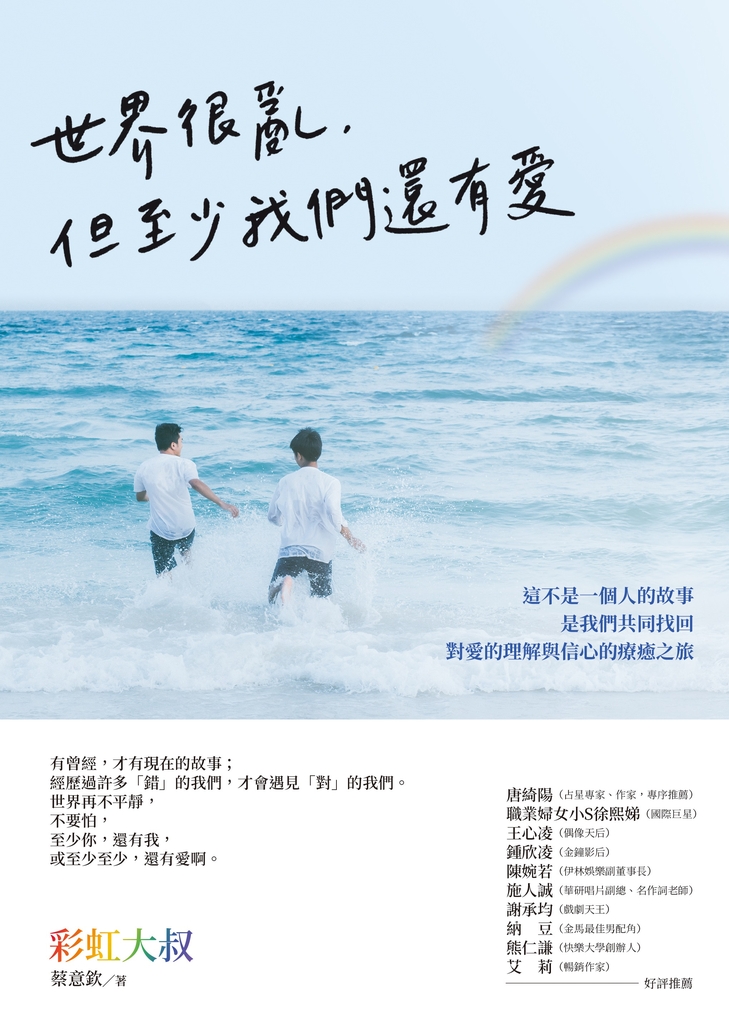 ‧陪伴:跟相伴15年的愛人分手後,媽媽問他:「今晚要不要我陪你睡?你十幾年來第一次要自己睡,可以嗎?」‧照顧:罹癌那段日子在病榻前日夜相伴的,不是家人也不是愛人,竟是已像家人一般的前男友。‧包容:朋友帶著現任伴侶和孩子,還有前任伴侶帶著現任伴侶,同坐一桌笑著吃飯,這畫面多溫暖。‧接納:同志伴侶的牧師爸爸說:「愛上一個同樣愛你的人,沒有對不起任何人,就沒有對不起上帝。」‧感恩:萬gay膜拜、促成無數佳偶的同志月老,至今仍是單身腐女──所幸當年那些小鮮肉,現在還不忘陪她散心吃飯。如果這都不算愛,那麼,愛,是什麼?