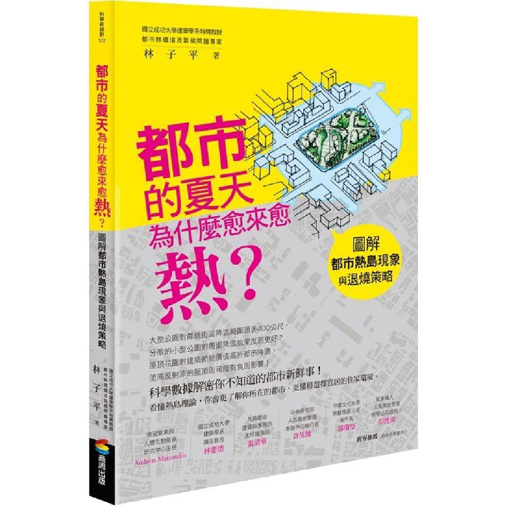 氣候變遷已經是連小學生都能朗朗上口的環境議題,「氣溫再創新高」的新聞標題亦屢見不鮮,都市真的愈來愈熱了嗎?高溫化對我們的生活有什麼影響?為什麼氣象預報的氣溫和人的體感溫度似乎不太一樣?都市高溫化就跟人會發燒一樣,是有原因的,除了常時開著冷氣對抗高溫,能不能找到更有效的退燒策略?
