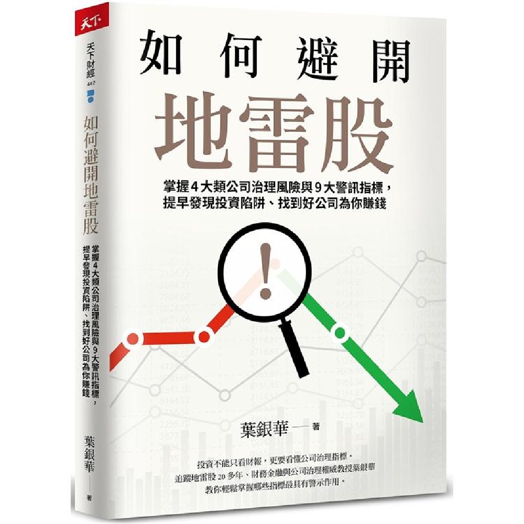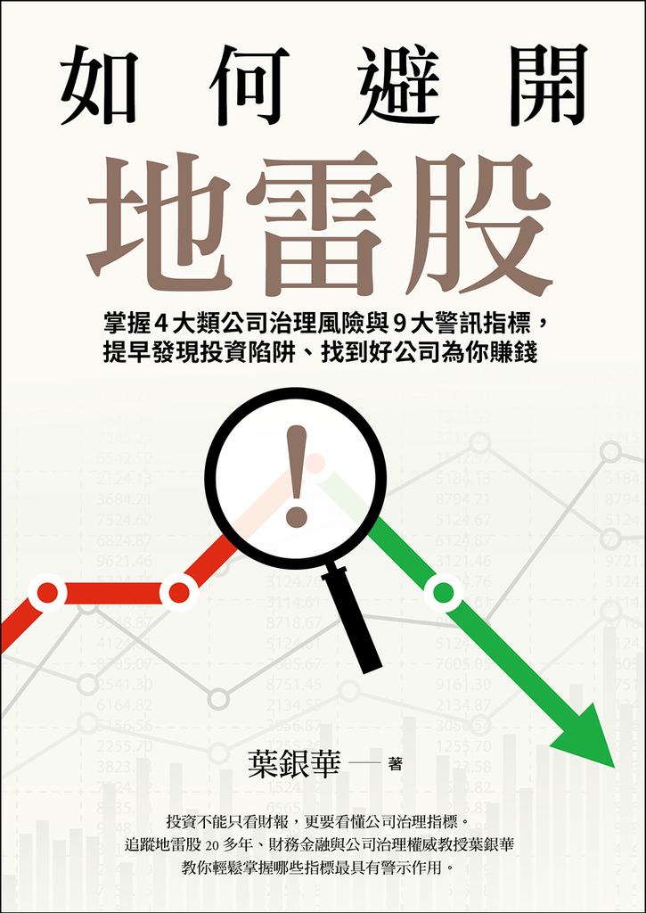 股市每隔一段時間就會出現新的地雷股,如何提早發現這些問題股、找到績優股?財務金融與公司治理權威教授葉銀華長期追蹤地雷股所顯現出的「事前」風險徵兆,告訴你什麼是公司治理9大警訊指標,又要到哪裡看這些指標。幫助投資人、分析師、會計師、經理人能夠「提早兩年以上」識破財務地雷,即使毫無財務或會計背景的讀者,也能輕易理解!