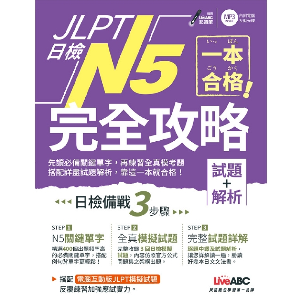 一本合格!JLPT日檢完全攻略(試題+解析)N5