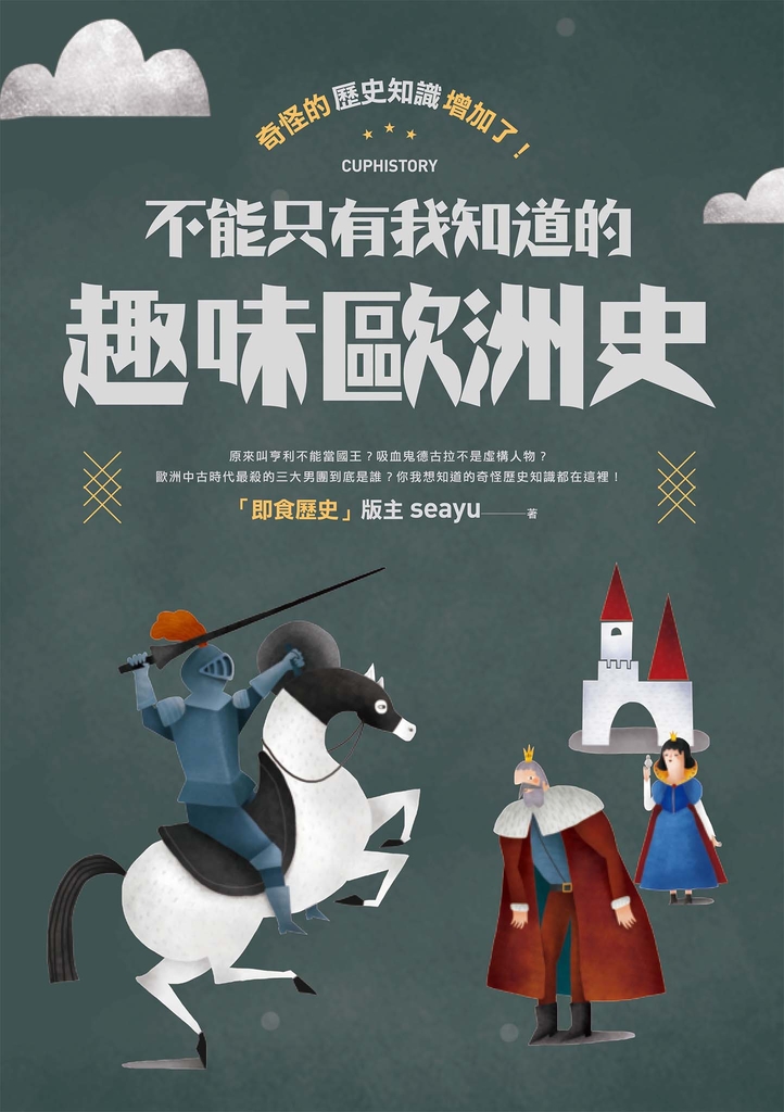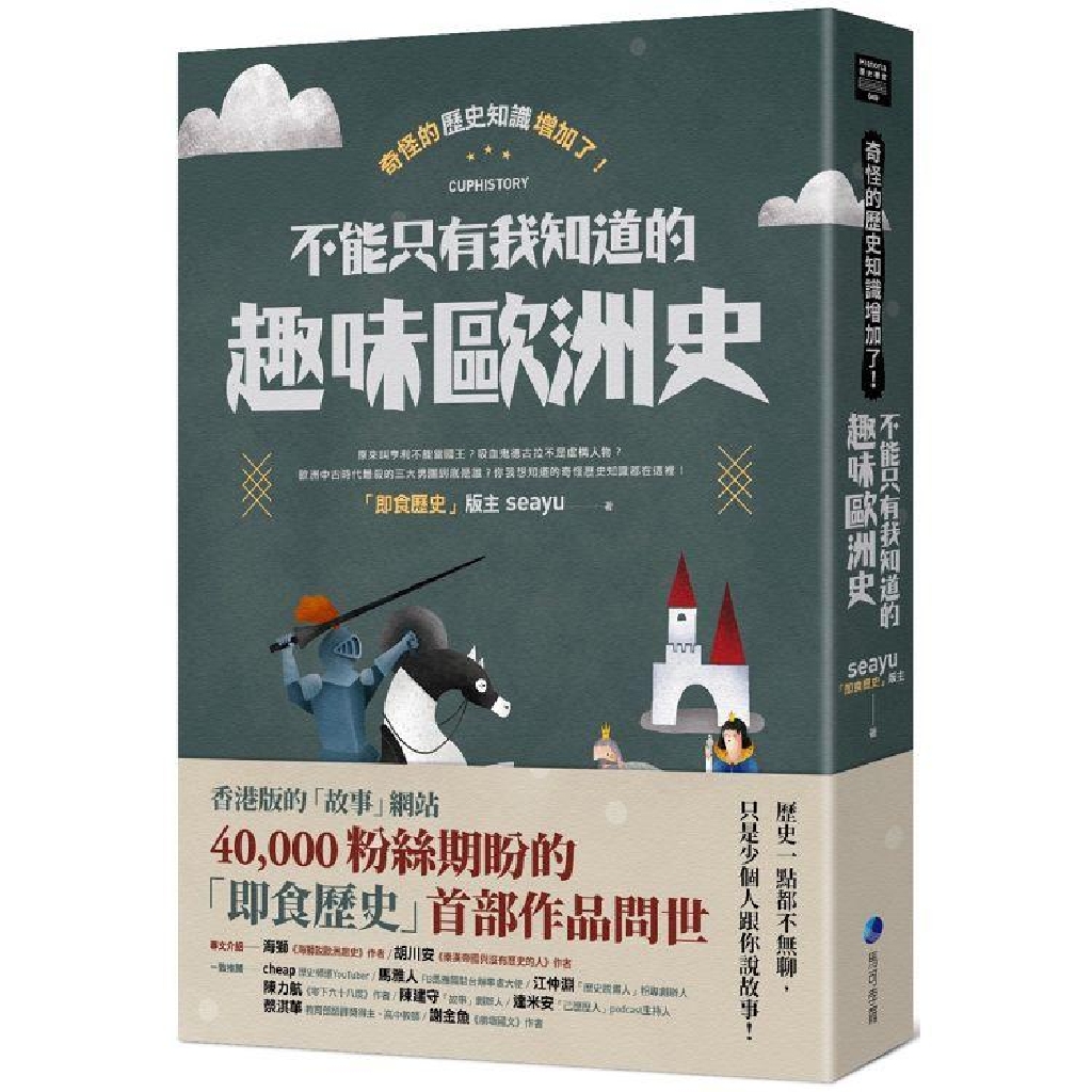 本書共收錄三十多個歐洲歷史上的有趣故事,分為「有趣的歷史知識」、「好聽的歷史故事」跟「迷人的歷史人物」三部分,其中有原來名字是「亨利」沒辦法當英國國王,中世紀最殺的男子團體不是BTS而是聖殿騎士團,還有歐洲最美的公主竟然也是個歷史學家,這些新奇有趣的故事絕對顛覆教科書上的歷史刻板印象。