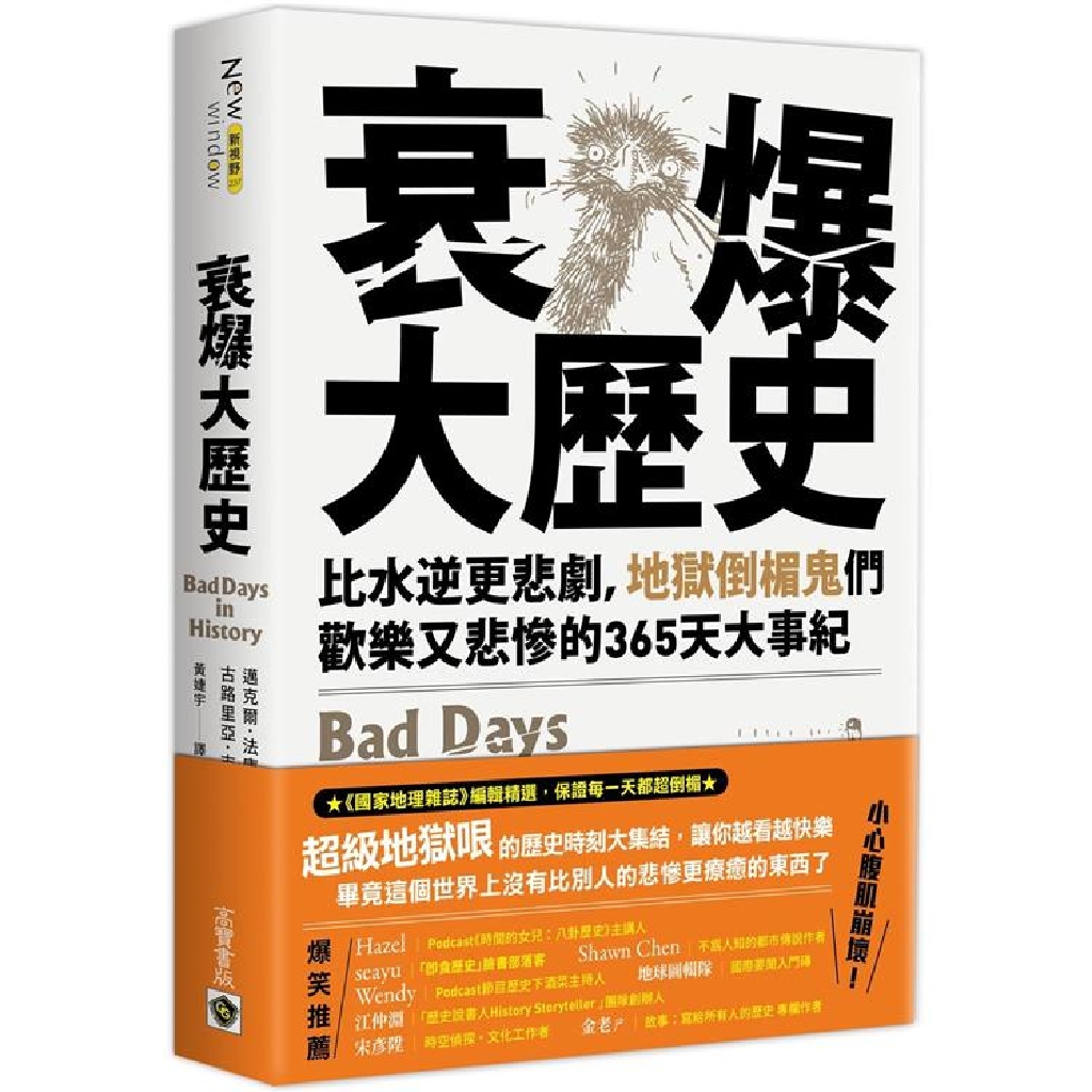 書中蒐羅鮮為人知的紀念日、奇形怪狀的死法、以及長期被人們忽略的歷史邊角,讓你一窺人類史上衰運的極致,絕對能滿足你對於倒楣故事的渴望。