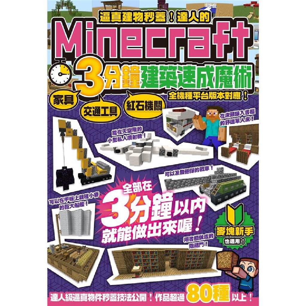 讀者將會驚訝的發現,要完成這些達人級作品,絕大部分竟然都不用超過10個步驟,就像變魔法一樣,每個都能在3分鐘以內做出來!想要快速越過摸索期,趕快體驗到Minecraft建築之美的玩家,我們誠摯推薦本書給您!