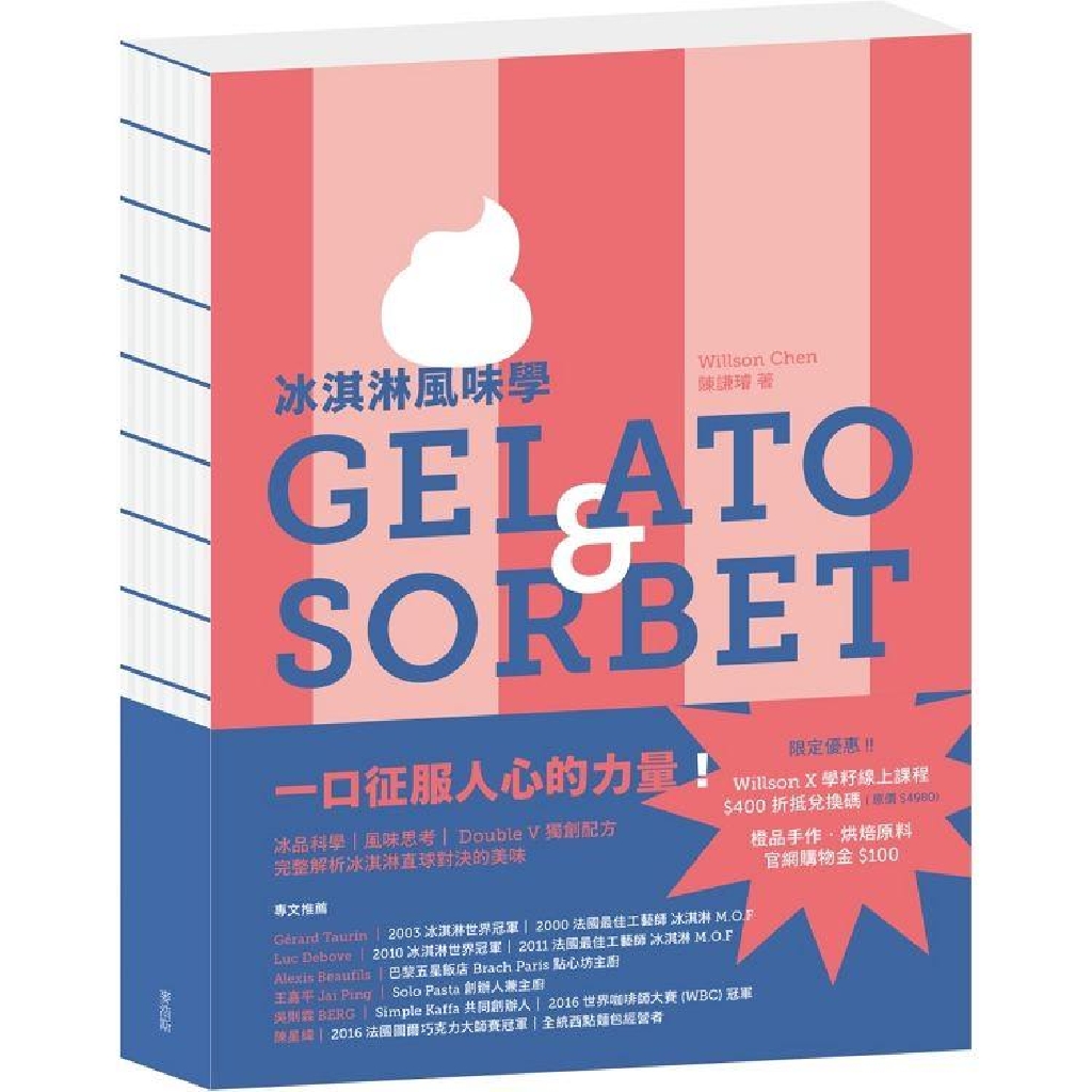 「在我看到的料理界,我們最不缺的就是情懷、小故事和創作理念。很遺憾的是,各位在Willson的這本『教科書』裡,你將看不到這些溫情!書裡有的只是再專業不過的冰淇淋操作原理和概念,與紮紮實實的精準配方。我必須恭喜買這本書的人,Willson累積多年的專業紮實理論,將帶著你對冰淇淋的浪漫幻想飛上天際!」