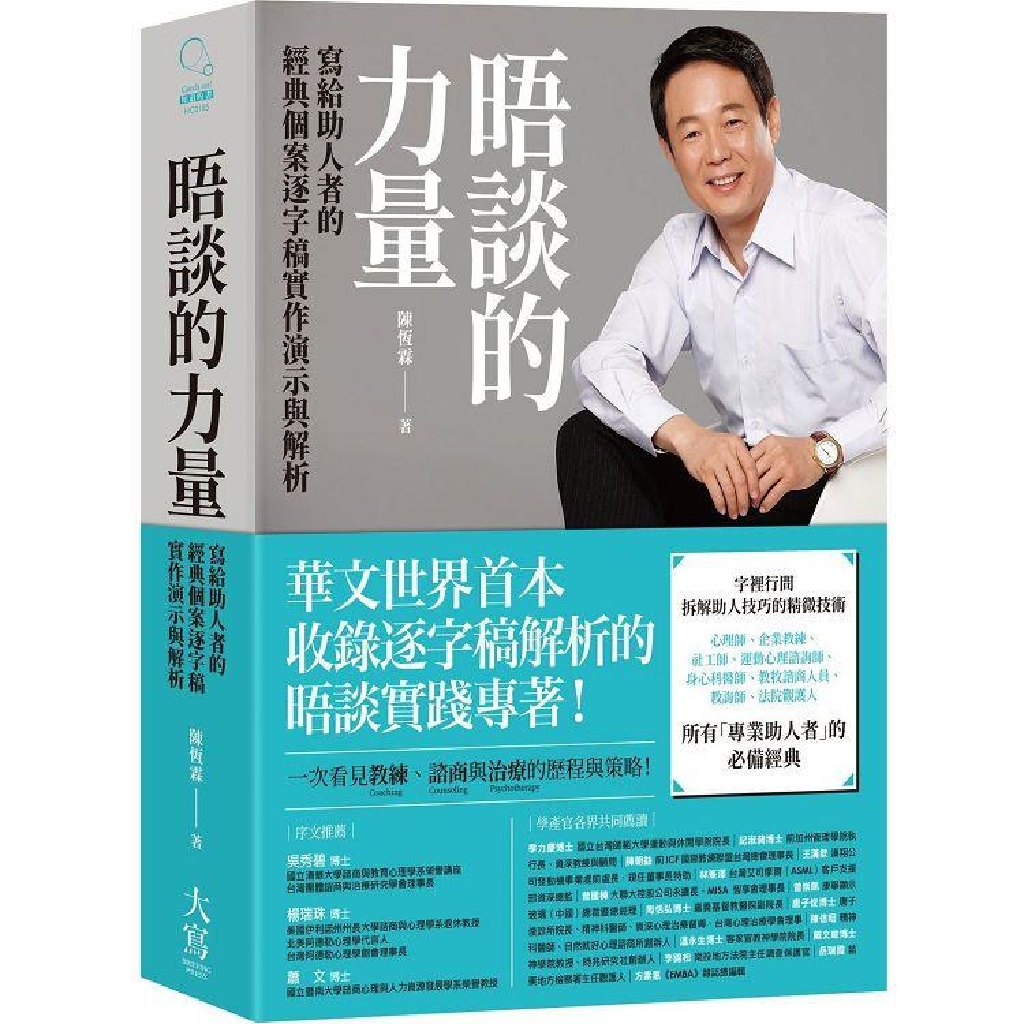 30餘年專業「助人者」的最終極晤談現場實錄分析寶典,一次看見教練(Coaching)、諮商(Counseling)與治療(Psychotherapy)的歷程與策略!