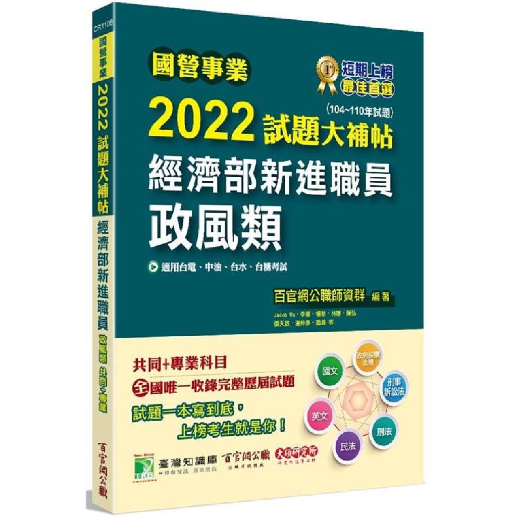 國營事業2022試題大補帖經濟部新進職員【政風類】共同+專業(104~110年試題)[適用台電、中油、台水、台糖考試](CR1106)