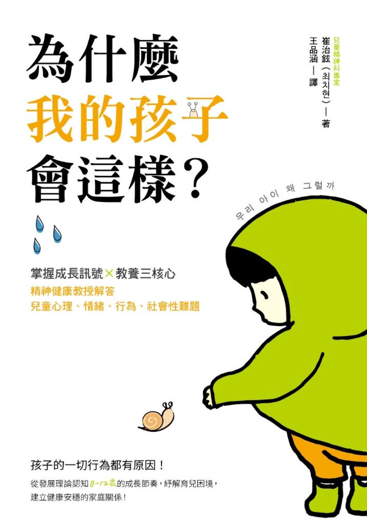 「為什麼我的孩子會這樣?」、「我能成為好父母嗎?」⋯⋯在教養這趟漫長的旅程中,憂心的家長總是不停地叩問,質疑自己的同時,也對孩子失去信心。首爾大學兒童與青少年精神科專家崔治鉉教授,為了幫助有心理、情緒和行為問題的兒童與青少年,在本書中指出,讓父母感到棘手、親子間發生矛盾的問題,大多是因為缺乏對孩子成長過程的理解所致。崔教授以長年的諮商經驗,結合科學客觀的「發展理論」框架,將依附、心理社會發展、認知發展、分離與個體化⋯⋯等理論化繁為簡,圖解各階段的語言、運動等行為特徵與發展里程碑,協助父母掌握成長訊號,多角度理解幼兒的經驗與發展課題,培養孩子的信任感、自律、想像力與人際關係!