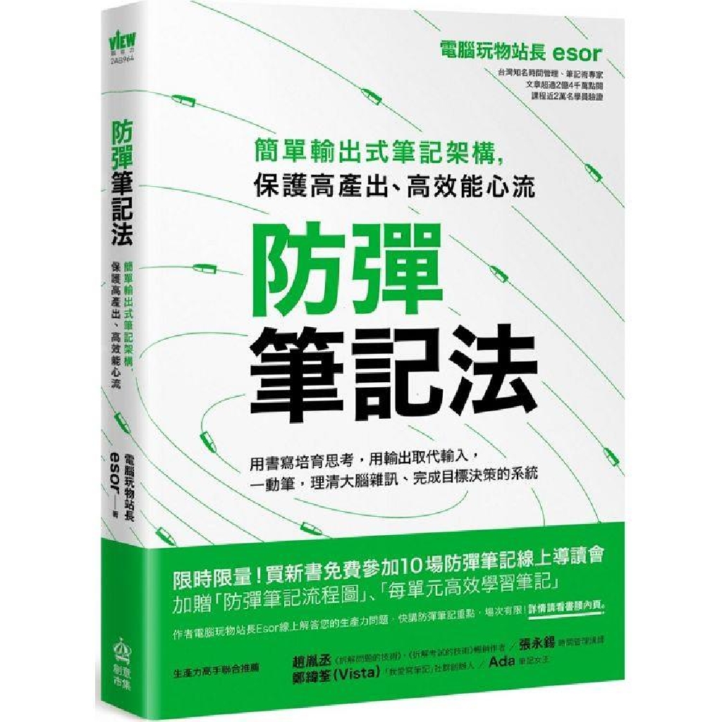 ***搶先購買新書,免費參加10場防彈筆記線上導讀會,讓作者電腦玩物站長Esor在線上解答您的生產力問題、快講防彈筆記重點,"場次有限"!詳情請看書中介紹。