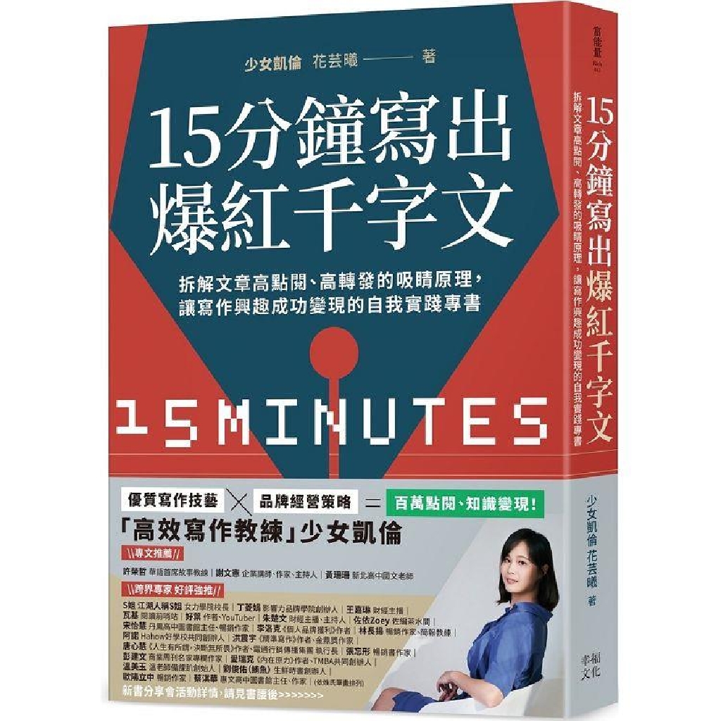 從無法表達自己的想法,到可以短時間寫出一篇有獨特觀點的文章,甚至面對上百人的演講現場侃侃而談,凱倫將此歸於「寫作」帶來的改變;她也認為,在創作者時代來臨的現在,「寫作」是門檻最低的自媒體經營方式,希望透過這本書系統化整理優質寫作技藝和品牌經營技巧,為想投入這條知識商品變現之路的人,有效率的實踐興趣變專業、翻轉自己的人生。