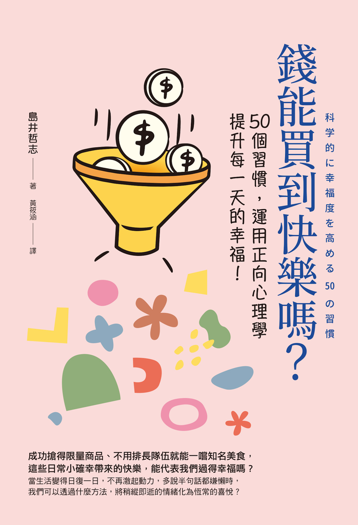 日本心理學家,同時也是倡導正向心理學的第一人──島井哲志教授,將運用正向心理學的研究議題,為現代人日益稀缺的幸福感提出50個培養生活習慣的提案。