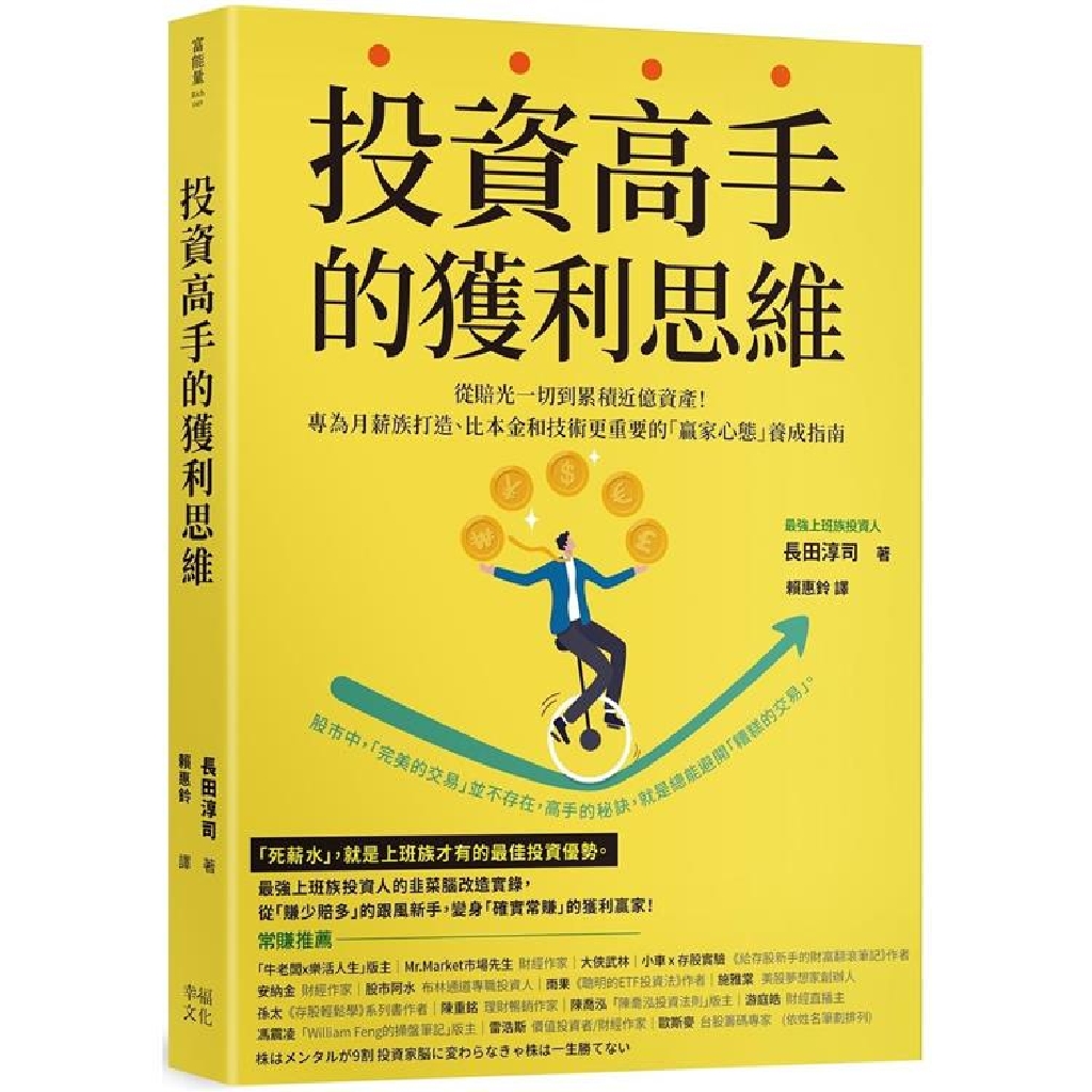 「最強的散戶上班族」長田淳司,笑稱自己是「不會技術分析、笨笨的二流投資家」,在學生時期盲買股票,第一次投資就獲利20%!嚐到甜頭後,只「憑感覺」在雷曼風暴的市場交易,賠光所有資產。檢討過去的投資內容,發現自己根本在胡亂賭博!而改變投資心態之後,長田認為,想成為投資贏家、打造「獲利腦」,一定要先具備「股市基本須知」: