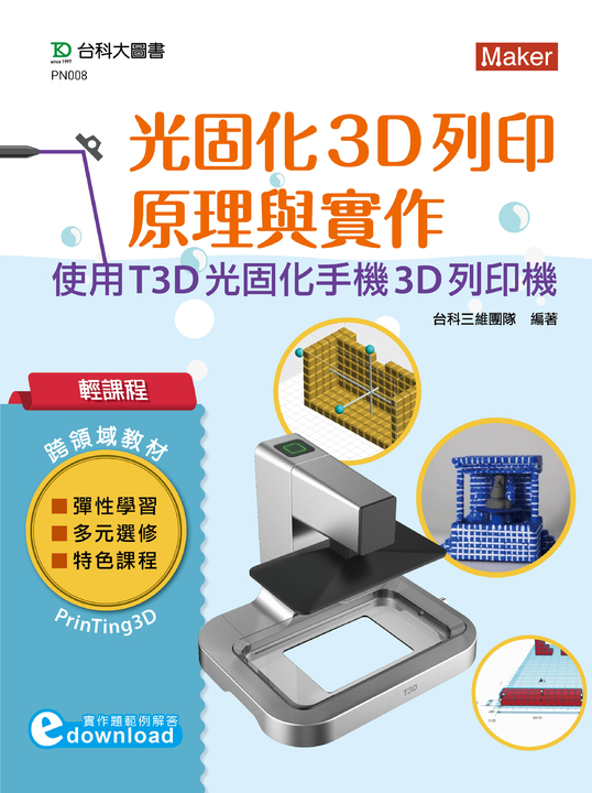 本書亦特別針對 3D 列印(積層製造)的觀念進行解說,引導初學者學習可實際列印出來的建模設計方法。