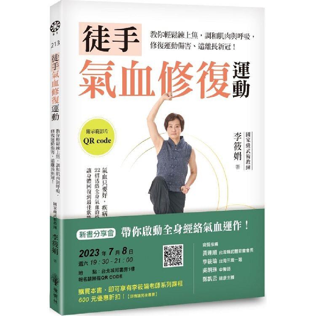 書中有針對上半身各個部位的局部運動,也有針對心肺的全身養生功法;有動作少、非常簡單,但卻有效衝高心跳的心肺運動;也有暢通氣血的穴位按摩和呼吸練習。讀者可以按書中步驟一步步學,也可以依照自身的身體狀況和時間地點來選擇動作,是非常自由、簡單,卻十分專業、有效的運動工具書!