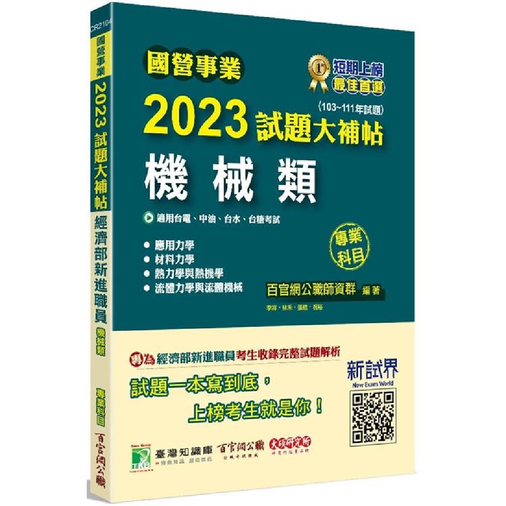 國營事業2023試題大補帖經濟部新進職員【機械類】專業科目(103~111年試題)[適用台電、中油、台水、台糖考試](CR2104)