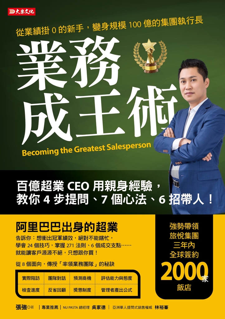 本書作者、超業CEO張強,不僅自己是冠軍業務員,更帶出冠軍業務團隊。他進入阿里巴巴後,起初業績總是掛零,一年就翻身為頂尖業務。後來,因為能力傑出和績效輝煌,他晉身為規模100億的綜合性旅遊產業集團CEO。