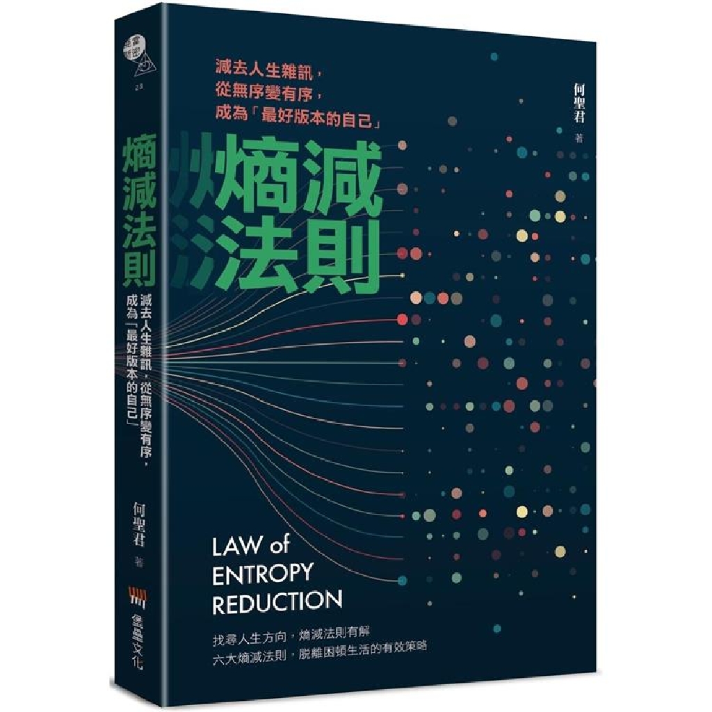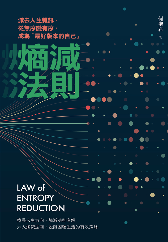 根據熱力學第二定律指出,能量在轉化的過程中無法被100%利用,而這些在轉化過程中逸散的「無用能量」即為「熵」。在一個自然界的封閉系統中若沒有外部能量的介入,其無序程度只會越來越大、越來越混亂。作者以「熵增」的概念用來比喻人們的生命過程,當你的人生只剩生存,工作與家庭兩點一線、沒有持續學習的動力、沒有生活的熱情,無自覺的生活彷彿困在透明的牢籠,有限的生命終將趨於隨機,最終導向失序的人生!「熵減法則」試圖打破這項定律,從情緒控管、個人理財、工作職場、人際關係、健康管理⋯⋯各個面向著手,一步一步帶領你重拾自我意識、設定人生目標,逆著衰敗而行,成為「最好版本的自己」。