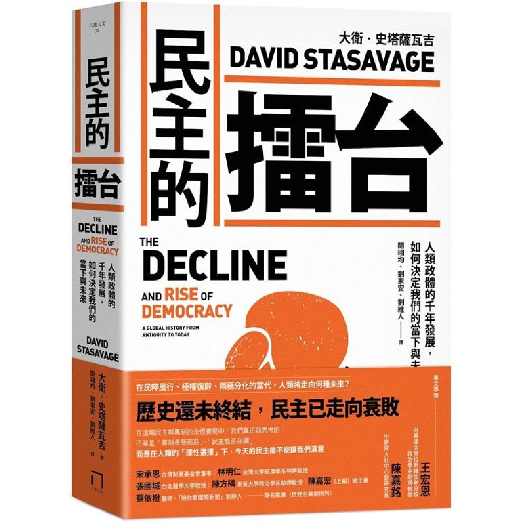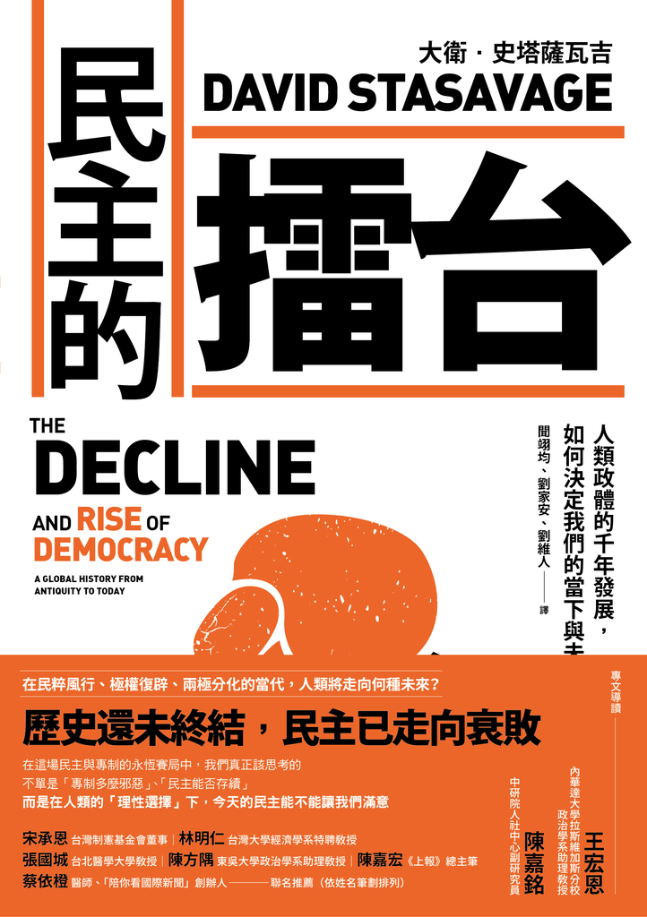 民主從何而來?如何維持?未來又會走向何方?這些都是當今「民主焦慮」時代,人們最關心的問題。不同於坊間常見的民主理論著作強調近兩三百年的發展,本書作者史塔薩瓦吉會將時間拉深、地域拉廣,跨越歐洲、亞洲、中東、非洲及美洲地區,追索比較四千年來不同政治統治體制的歷史變化,來回應我們所遇到的民主問題。