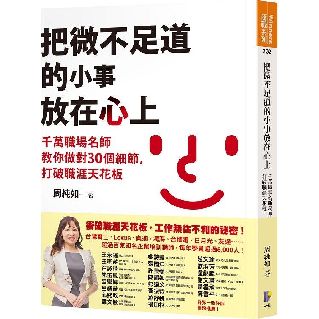 純如老師一路從行政收發、祕書、幕僚,做到科技公司董事,具備豐富的基層、管理與教學經驗,深刻了解中階主管面臨的兩難處境、新進人員容易疏忽的應對細節。在這本書中,她分享個人經驗與實際案例,並提供解決方案,協助職場工作者減少摸索、自我懷疑的心力,掌握對上、對下、橫向溝通的要點,會做事又會做人的訣竅。