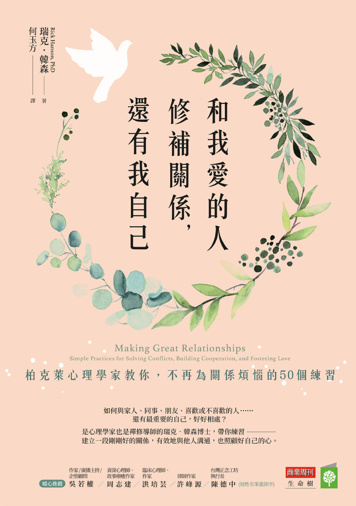 我們的人際關係比以往任何時候都更重要,但也可能充滿衝突、尷尬的沉默,或是錯失了一些機會。即使對方沒有改變,瑞克.韓森也會向你展示如何擺脫雙輸的爭執,並尊重自己的需求,感到心境平和。這是一本有內容、實用且恰逢其時的好書。──蘿蕊.葛利布(Lori Gottlieb),著有《也許你該找人聊聊》(Maybe You Should Talk To Someone)