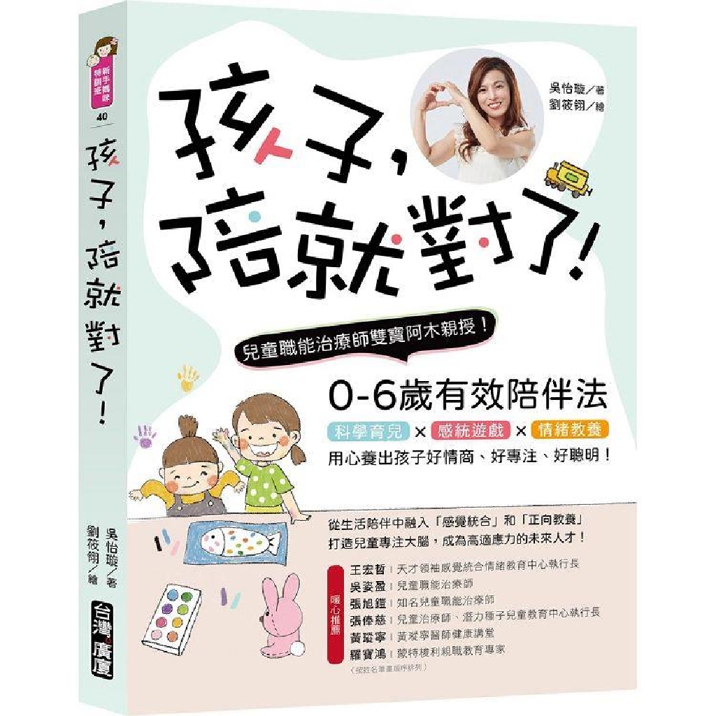 「陪伴也要有方法,最專業的雙寶阿木職能治療師,提供給家長們的陪玩、陪吃、陪學習育兒心法,一次解決父母育兒的疑難雜症。」--天才領袖感覺統合情緒教育中心執行長 / 王宏哲