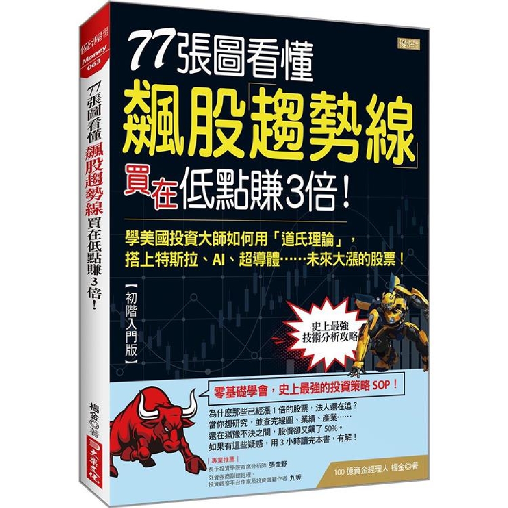 書中以實際案例,帶我們分析實戰中的各種行情波動。跟著作者有系統看懂趨勢、順應趨勢、掌握趨勢,就能逐步培養出良好的「盤感」,進而活用趨勢反轉前的有效訊號,及時預測個股的漲跌路徑,就算是股市小白,也能快狠準搭上飆股。