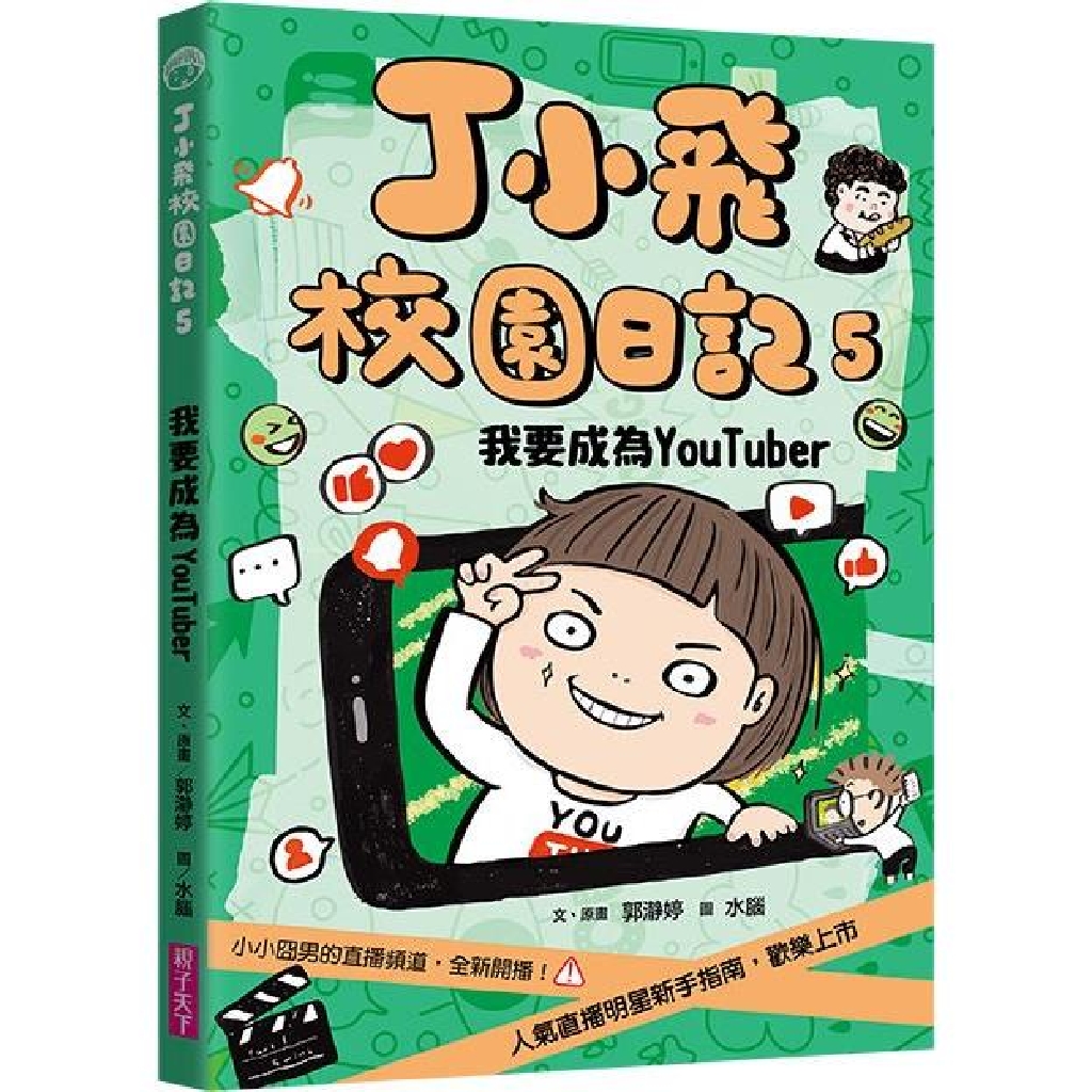 深受小學生喜愛的【丁小飛校園日記】系列第五集來囉!一直很喜歡這系列圖文生動並呈的校園故事,主角丁小飛雖然成績不佳,卻沒有因此貶低自己,依舊充滿自信與夢想,相信大朋友、小朋友都會被他對生活的積極熱情給激勵到!在第五集裡,想要成為人氣YouTuber的丁小飛,在日記中又會寫下什麼好玩有趣的內容呢?翻開書本一探究竟吧!——李貞慧 教師暨閱讀推廣者