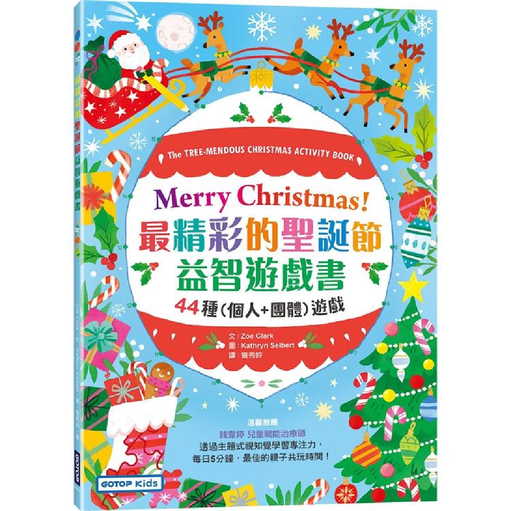 這本精彩的活動遊戲書比聖誕老人的工作室,充滿更多聖誕節的歡樂喔!保證讓孩子們在聖誕節期間充分感受到快樂的氛圍並獲得多關於聖誕節的樂趣!全書環繞著聖誕節的主題,進行各式各樣的益智遊戲活動,包括個人遊戲以及團體活動,讓孩子在過節的氣氛裡一邊玩樂一邊學習。