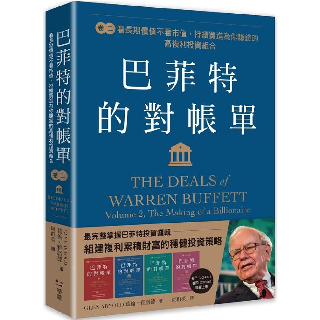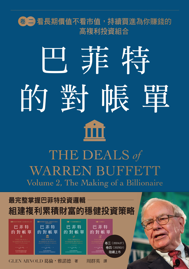 《金融時報》暢銷書作家、金融學教授葛倫.雅諾德,身為波克夏・海瑟威的股東之一,20年來追蹤波克夏的經營策略,見證波克夏從市場的新手玩家一路發展成全美淨資產最高的企業。在系列書《巴菲特的對帳單》中,他完整記錄巴菲特投資生涯中的重要交易與對帳單,讀者可以隨巴菲特的投資軌跡,看見他如何不斷修正自己的投資策略,洗鍊出價值投資的重要原則,也回頭重新檢視自己的投資歷程,組織個人的最強獲利邏輯。
