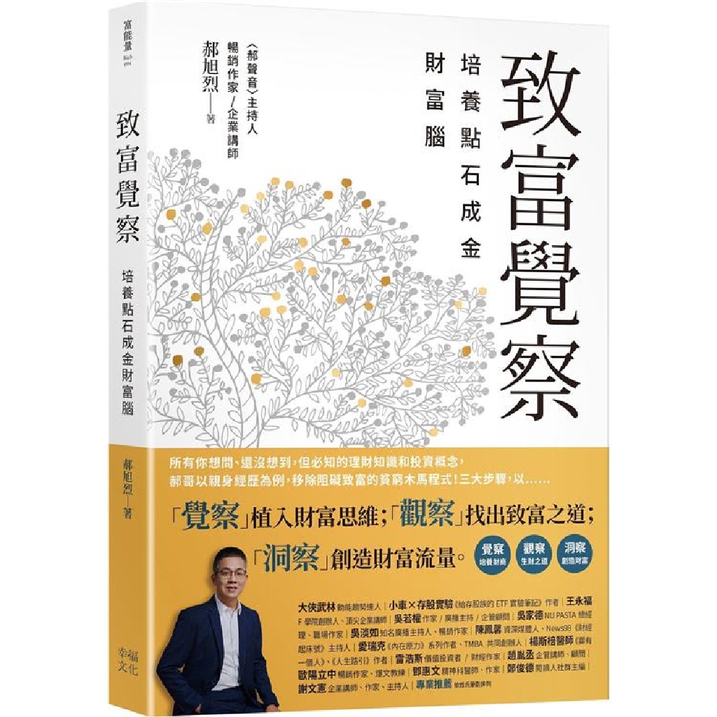 播客「郝聲音」主持人、超人氣企業講師、前台積電財務主管──郝旭烈(郝哥),將親身經歷透過「三察」,以「覺察」植入財富思維;「觀察」找出致富之道;「洞察」創造財富流量。