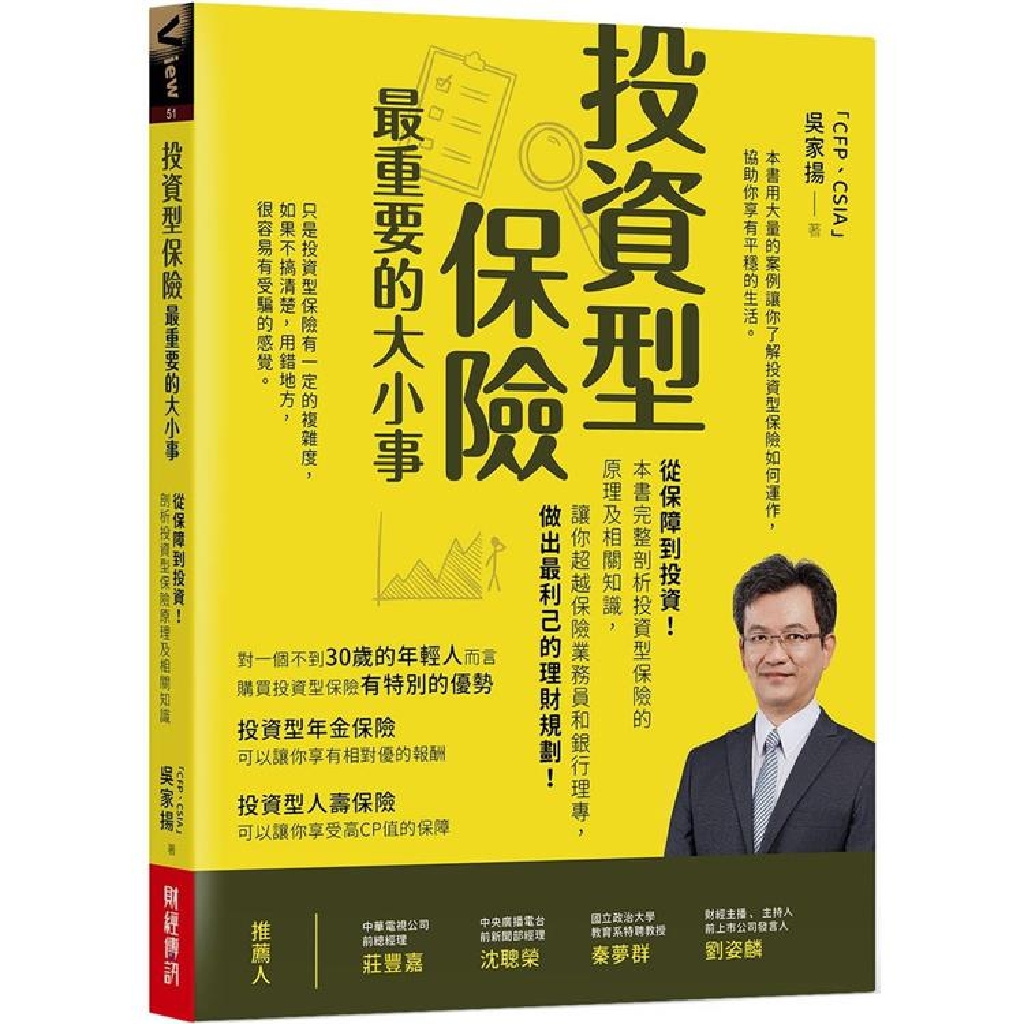所有保險公司都會把相關商品資訊放在網站上。只是大量的專有名詞,讓一般消費者望而卻步。本書替你用白話解釋網站在的「文言文」條文。讓你可以輕鬆看懂每一家保險公司的投資險商品。