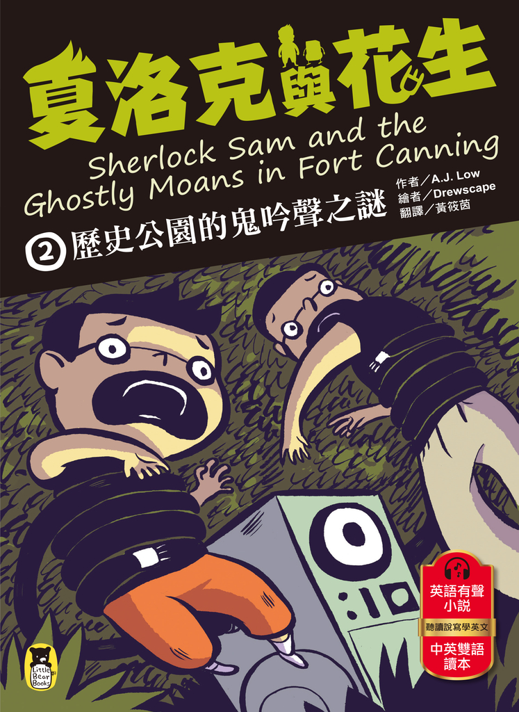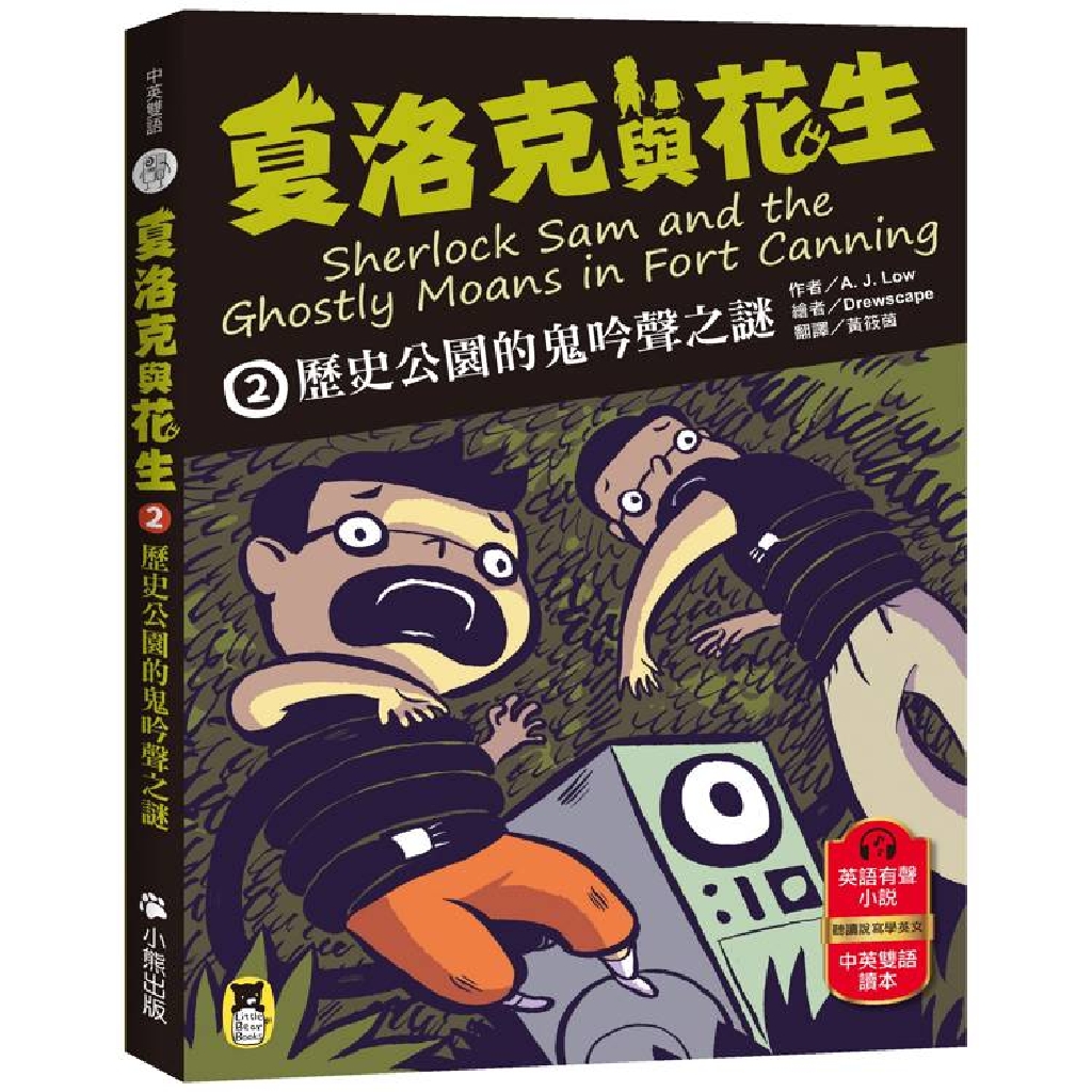 【精采推理】+【幽默對白】+【中英雙語讀本】+【英語有聲小說】 不信鬼神的貪吃偵探 × 愛看好戲的機器助手 跟著夏洛克與花生調查靈異現象,聽.讀.說.寫學英文, 並培養科學思考、理性求證的精神!