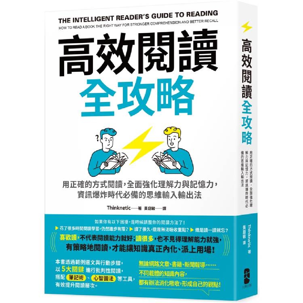 本書拆解4大閱讀理解層次,並提供10大閱讀素養實戰訓練,以及42個關鍵訣竅。讓我們可以有系統地理解、學習新知,牢記吸收到腦袋的資訊!此外,本書更收錄「英文閱讀特訓練習」,帶你擴大閱讀視野,增進跨文化解讀力。