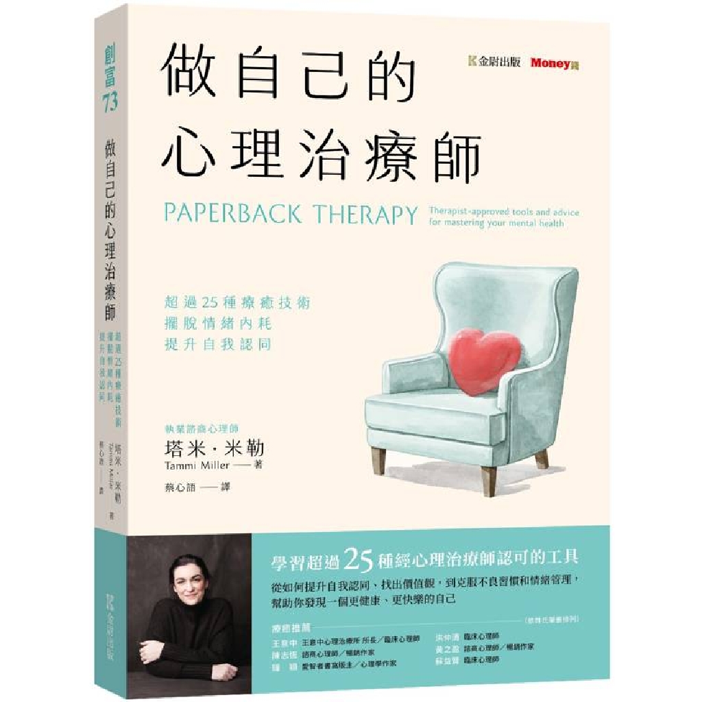 領有合格證照的執業諮商心理師塔米‧米勒透過本書,帶你踏上自我探索和療癒之旅。書中提供超過25種心理治療師認可的工具,舉凡如何提升自尊、按照自己的價值觀生活、克服不健康的習慣及應對焦慮等技巧。透過本書的許多提示和練習,能對你的心理福祉大有益處,引領你找到更快樂、更健康的自己。