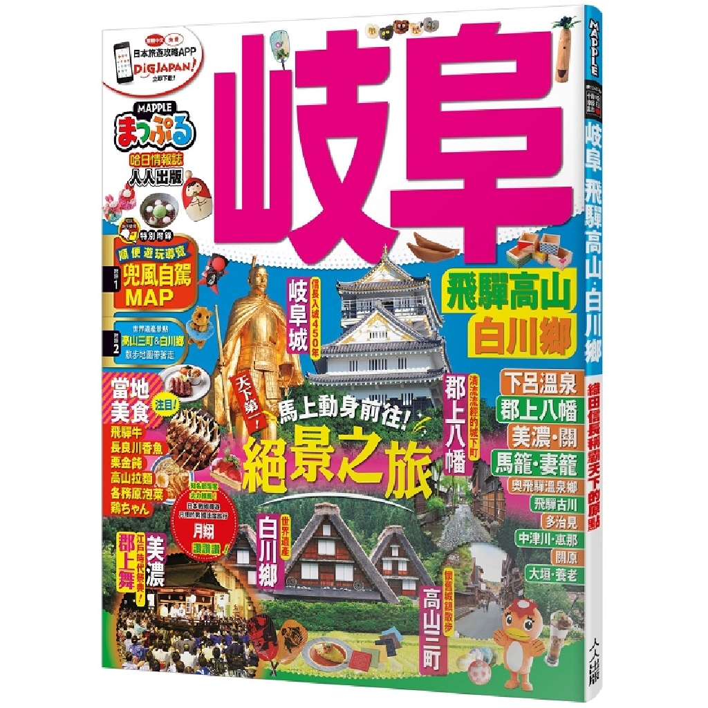 隨書附贈二大附錄1:16頁廣域地圖,快速瞭解相對地理位置,自助事半功倍!附錄2:高山三町&白川鄕散步地圖,將名店景點帶著走!