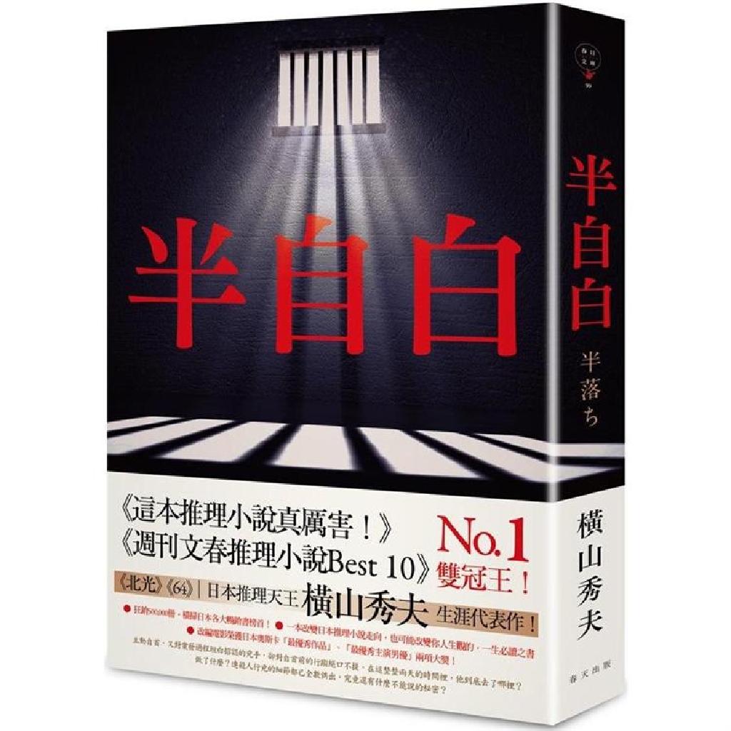 橫山秀夫筆力驚人,《半自白》一書中既描寫了醜惡的組織鬥爭,也刻畫出人性光輝,最後全書謎底揭曉時,更是賺人熱淚,出版後大受歡迎,深受各界好評。